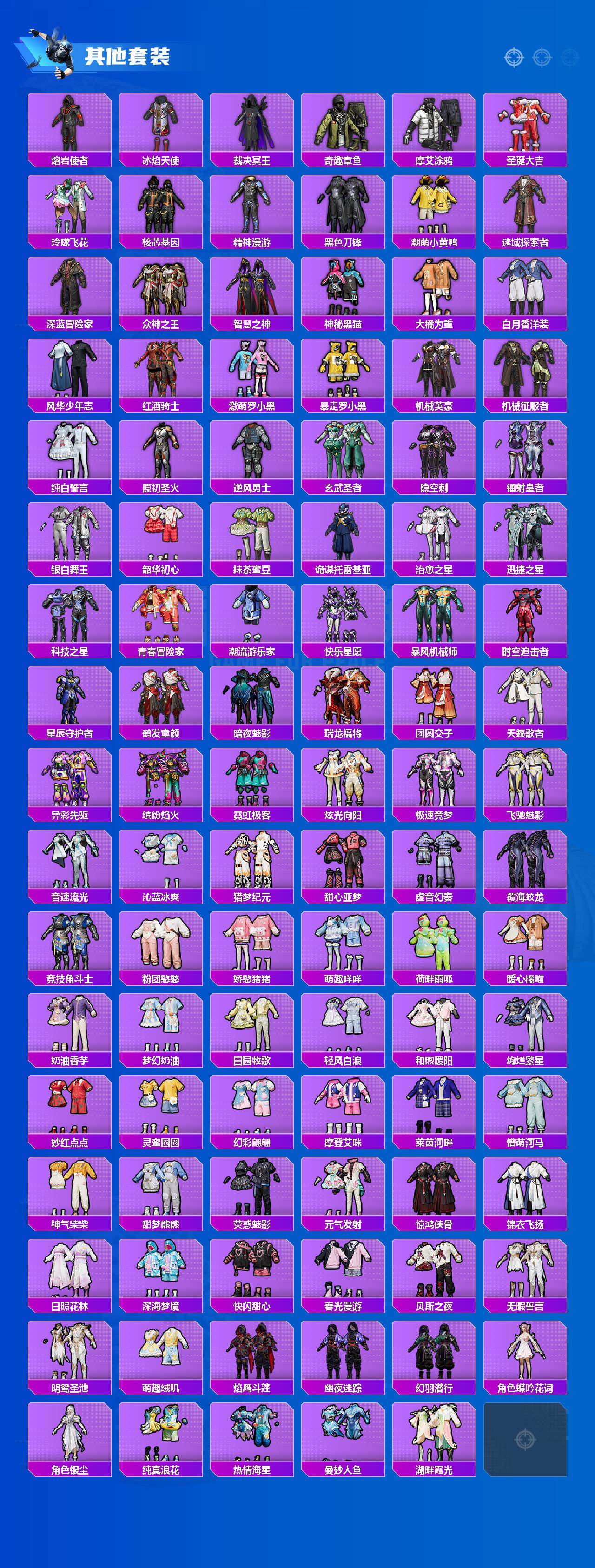 套装-怪诞乔克,套装-梦幻火箭,套装-都市猎人,套装-派对舞王,套装-胖达团团,套装-潮萌小黄鸭,套装-极限特训,套装-幻影战神,套装-数码大师,套装-未来战士,套装-金属狂野,套装-放客神游,套装-古堡领主,套装-香水柠檬,套装-星之彼岸,套装-暗夜玫瑰,套装-薄荷物语,套装-仲夏莫吉托,套装-莲影清波,角色-烟云彩露,角色-美琪,角色-月影灵韵,好奇恐龙套装,套装-鹰眼刺客,套装-呆萌铁蟹,套装-迅捷狂鲨,套装-东方飞龙,套装-梦魇先生,套装-万圣娃娃,套装-神秘黑猫,套装-大橘为重,套装-暴走罗小黑