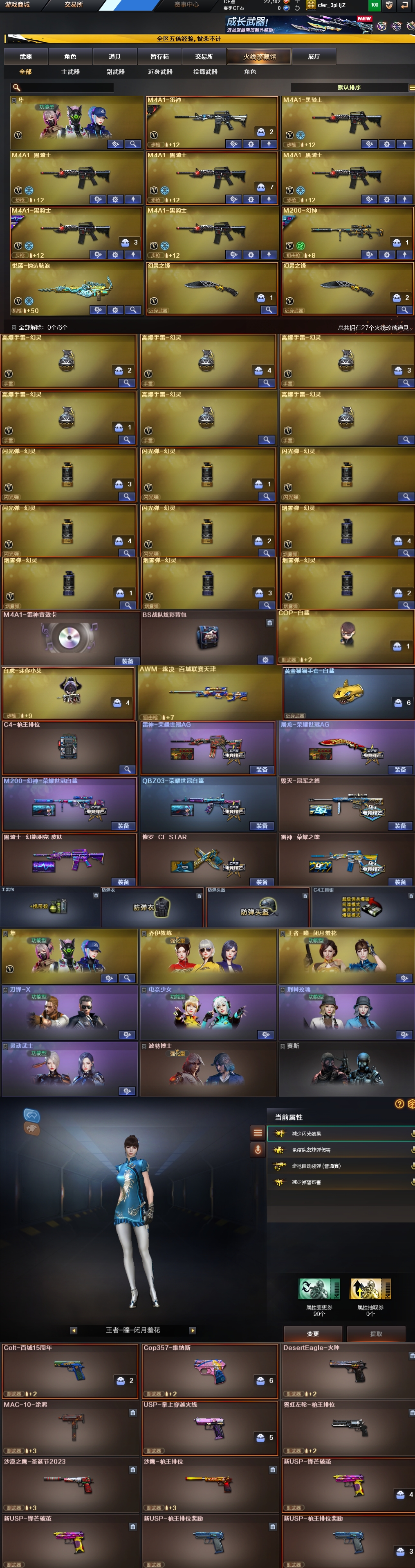 - [16762911]四川一区-95V-7王者-0炫金 【热门武器】:HK417-朱雀,M200-幻神,金色蔷薇-古蛇迷踪,修罗-古蛇迷踪,死亡之眼,荣耀世冠-火麒麟,荣耀世冠-雷神,白虎-电玩蓝兔,Kar98K-星神,M4A1-黑骑士,汤姆逊-烈龙*5,RPK-盘龙*5,加特林-炼狱,火麒麟-绝迹,COP-堕天神*2,沙鹰-修罗*3 【王者炫金武器】:王者之击 【音效卡】:M4A1-雷神音效卡 【皮肤】:裁决-流光秘银,雷神-诺拉 皮肤,M4A1-再燃火线,火麒麟-轻羽皮肤,黑骑士-AG-S4冠军典藏,无影-霓裳皮肤,极光-能量核心,修罗-能量核心,屠龙-巅峰荣耀 皮肤,轻型军用手斧-再燃火线 【角色】:魅影,炫,关小雨,战地猎狐,王者春,王者晴雅,雪域霜狐,蛇隐宗,乔伊教练,修道士,云海玲珑,空,初恋灵狐,电竞少女,芳心审判者,飞虎队-X,风暴女,虎妞,嘉年华灵狐,兰-新年限定,兰妹妹,零-水下丽影,灵狐-花神,灵狐者-七夕宝贝,灵狐者-职业经理,龙儿,龙儿-小淘气,麻雀,潘多拉-X,潘多拉-甜心教官,潜龙队-X,青霞仙子,蛇姬,斯沃特-X,蜀雪,铁骑荣耀,兔囡囡,雪莉杨,夜玫瑰-幻能朋克,樱-缤纷夏日,影武者-X,游珑儿,雅典娜 【人偶武器】:火麒麟-绝迹,海滩汪汪-巴雷特,M37-葵,迷你深渊冰龙,迷你裂空之翼*3,迷你波特博士*3,夺魂*6,迷你火种*4,迷你生化手雷,生化手雷-机甲核心*3,深渊终结者手雷,闪光弹-小乔,闪光弹-貂蝉,高爆手雷-大乔,迷你超能女侍 【暴走生化】:死亡之眼 【挑战大师】:致命乱世-超越Max,AK47-冰龙粉碎者,激光毁灭者III-白马银枪*3,VEPR-12-金魔*2,激光毁灭者III,机甲撕裂者III,试炼破坏者III,神圣爆裂者-末日III*2,惩戒者III 【英雄级武器】:M4A1-千变,AK47-火麒麟*2,M4A1-雷神*2,M4A1-黑骑士,AK47-无影,AK12-天启,AK47-黑鲨*3,M4A1-龙血,HK417-朱雀,无影-神兵利器,金色蔷薇-古蛇迷踪,死神-雪域霜狐,SCAR Light-玄豹,烈火-动感闪耀,AK-47-猩红传说,AK47-B-战神,王者炎心-觉醒版,黑骑士-海王,AK47-B-常胜将军,白虎-电玩蓝兔,王者玄武-觉醒版,荣耀世冠-火麒麟,荣耀世冠-雷神,AWM-天龙,Barrett-毁灭,Barret