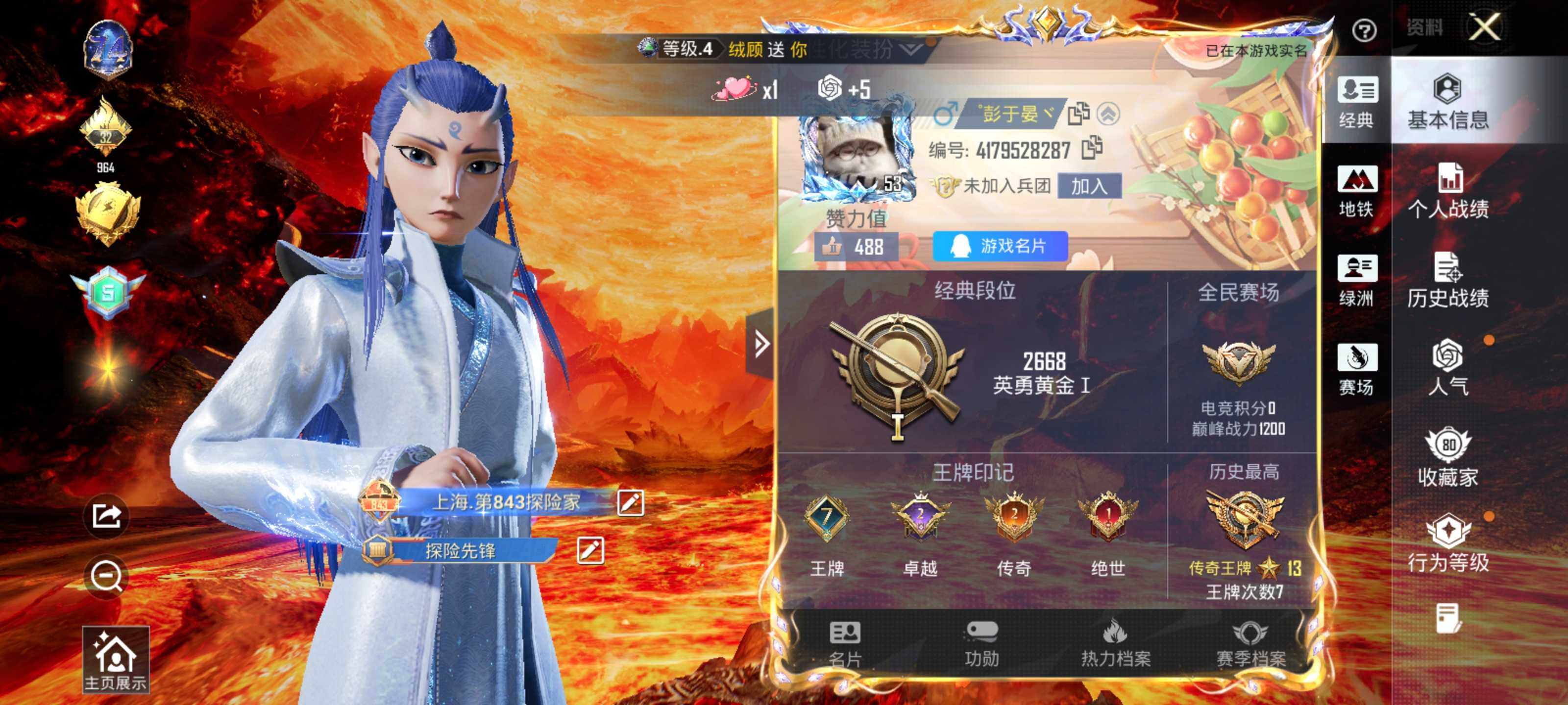 - [11253660]V8 9传说 124英雄 202皮肤 可修改实名 优质装备:黄金射手座,久胜战神,末日机甲-孙尚香(绿蚂蚱),地狱火,超时空战士-狄仁杰,山海·炽霜斩(李信年限) 珍宝阁皮:女武神,玩趣恶龙 限定皮:鸣野蒿,白晶晶,时雨天司(水龙头),神威(电光马子),高山流水,五谷丰年,冰锋战神,御风骁将(吕布年限),逐梦之星,天狼溯光者,奔雷神使(牛魔年限),李小龙,逐梦之影,逐梦之光,默契交锋-花木兰,大圣娶亲,冰霜恋舞曲,乒乒小将,山海·玄木吟(马可年限) 史诗皮:龙之律动,电玩小子(小书包),黄金分割率,特工魅影,江河有灵,无限星赏官,晚萤,猫狗日记-孙策,节奏热浪,修罗,摇滚巨星,水果甜心,心灵骇客,功夫厨神,暗隐猎兽者,幽灵船长,鬼剑武藏,地狱岩魂,纤云弄巧,缤纷独角兽,乘风破浪,逐浪之夏,水晶猎龙者,曙光守护者,金属风暴,原初追逐者,圣诞狂欢,圣诞恋歌,鹰眼统帅,王者之锤,黎明之约
