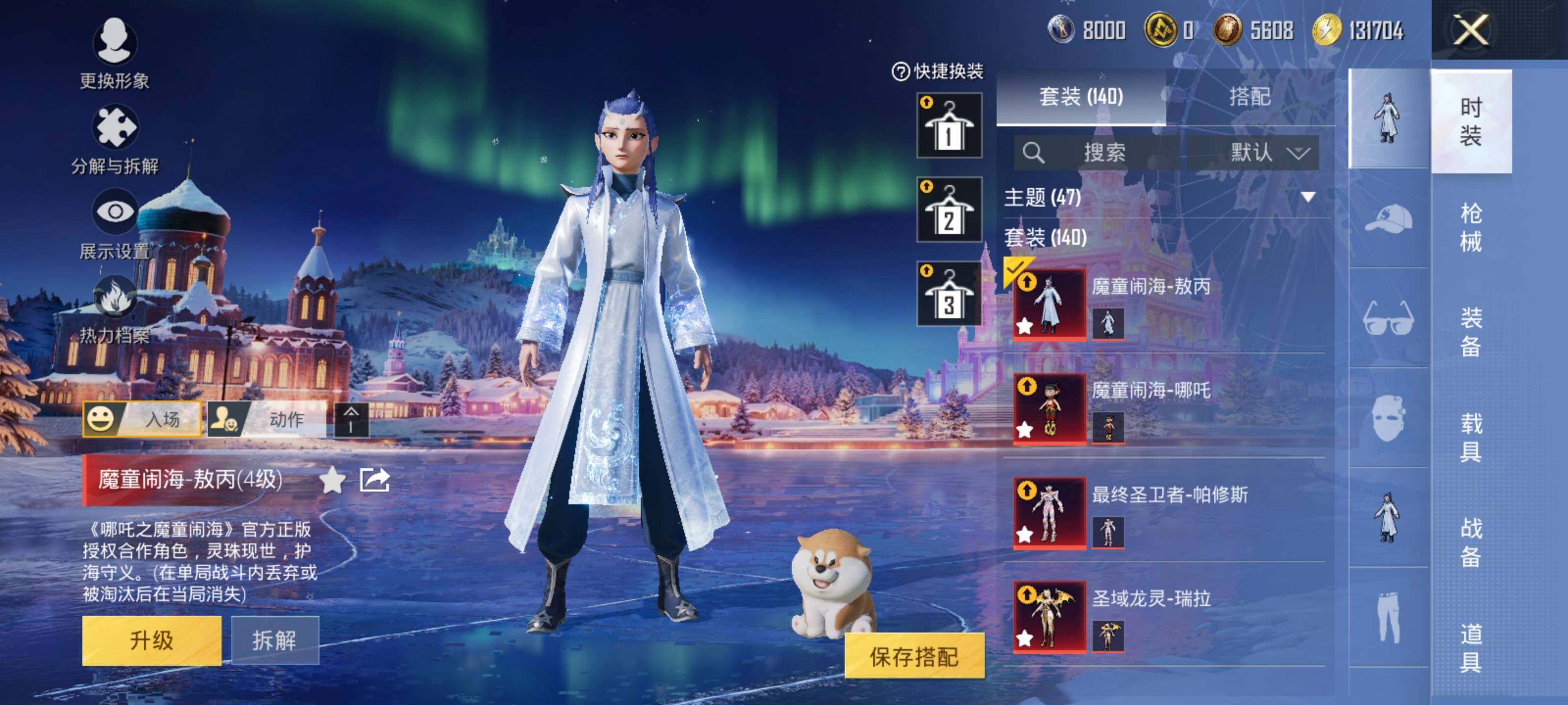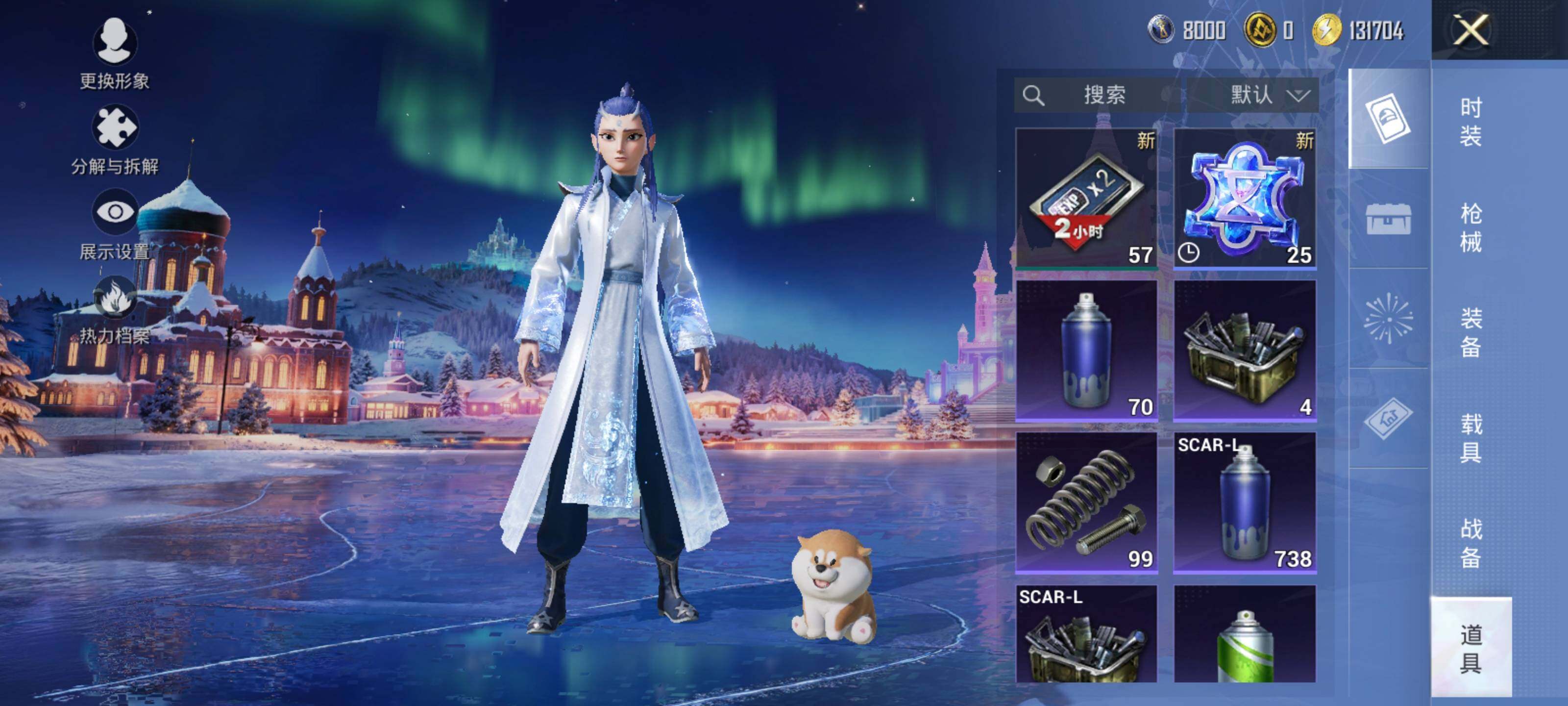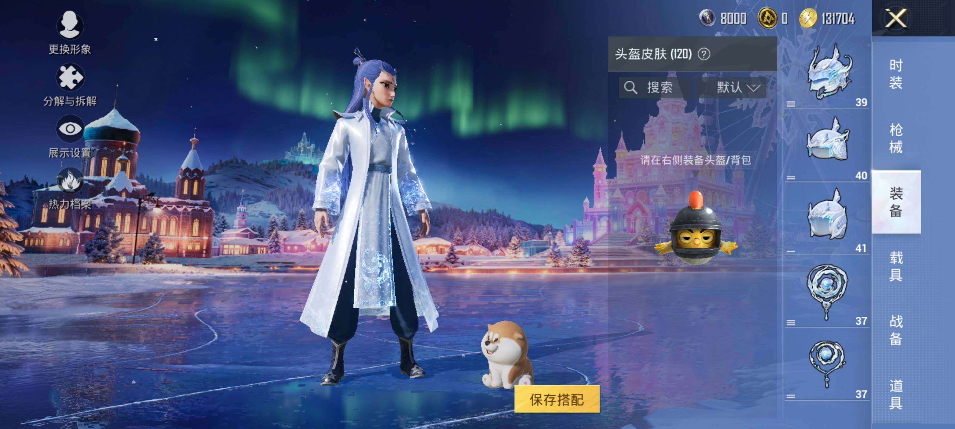 AKM-幽焰骑士,SCAR-L-童趣迷兔,M416-墨龙九天,GROZA-精灵之光,AUG-星梦奇缘,UMP45-相思残雪,Kar98K-巳巳如意,Kar98K-圣域龙灵,烟雾弹-丁香清露,破片手榴弹-热量炸弹