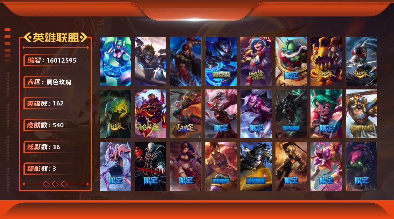 [16012595]【店主推荐捡漏号】未定级段位-162英雄-540皮肤-36炫彩-3终极-3神话-96限定-50传说-144史诗