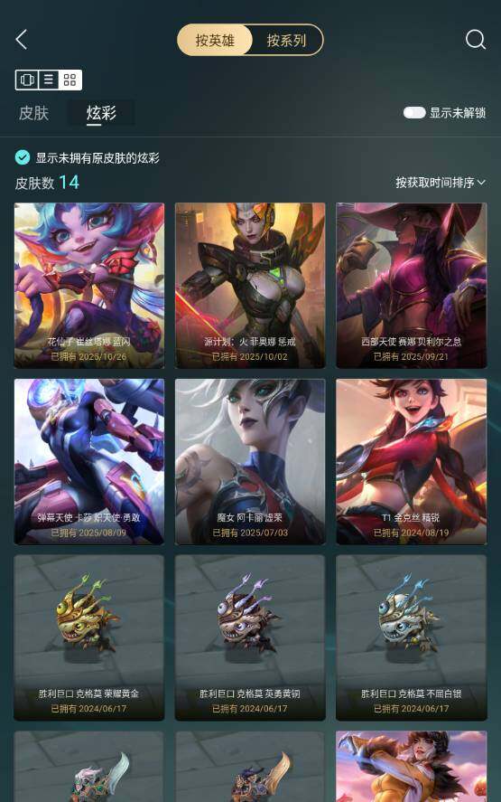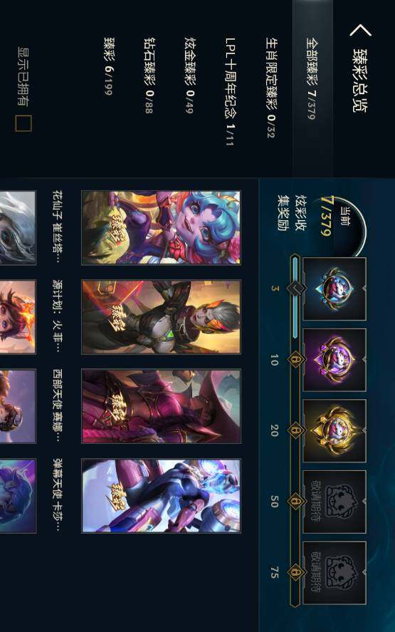 【臻彩皮肤】:无畏骑士瑟庄妮赤子初心,弹幕天使卡莎炽天使勇敢,西部天使赛娜贝利尔之怠,源计划火菲奥娜惩戒,魔女阿卡丽虚荣,花仙子崔丝塔娜蓝闪