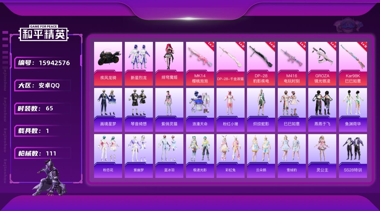 [15942576]【店主推荐捡漏号!可直接换绑】安卓 手Q-2粉装-6特效枪-1载具-3粉色飞行器-33862热力值-3王牌印记-65套装-111枪皮