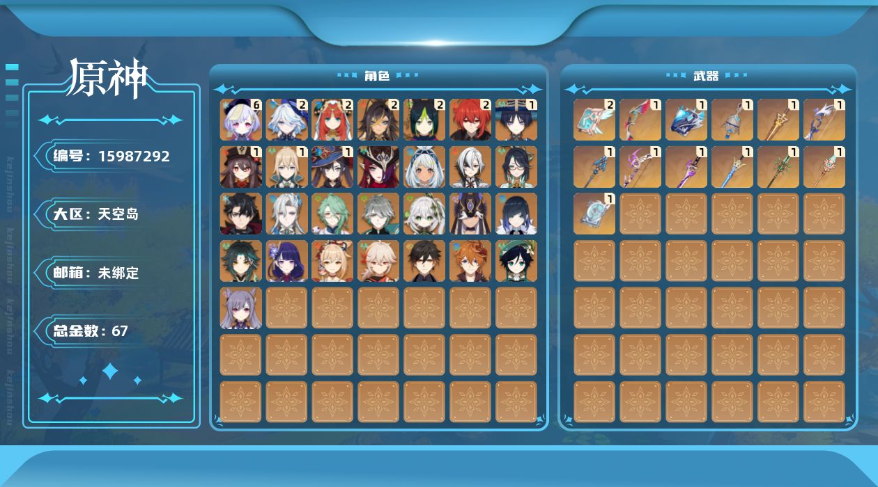 [15987292]60级/67黄/女主/31个五星角色/14个五星武器