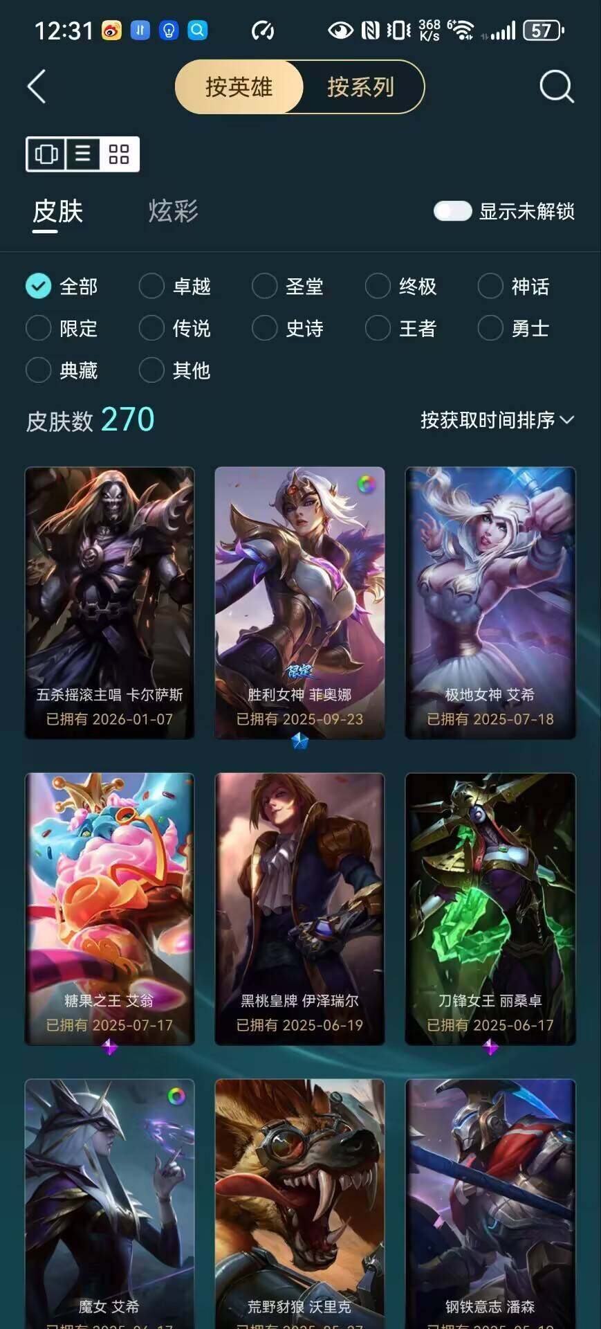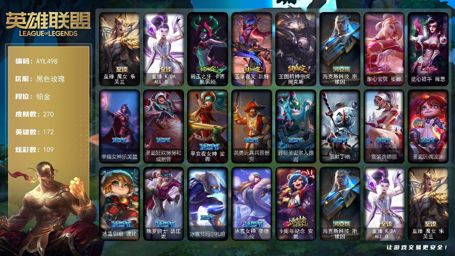 [15946959]可二次【特价出售/店主推荐】铂金段位-172英雄-270皮肤-109炫彩-0终极-4神话-41限定-31传说-79史诗