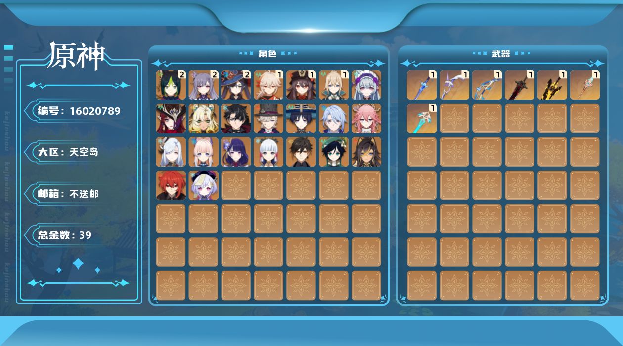 [16020789]58级/39黄/女主/23个五星角色/7个五星武器