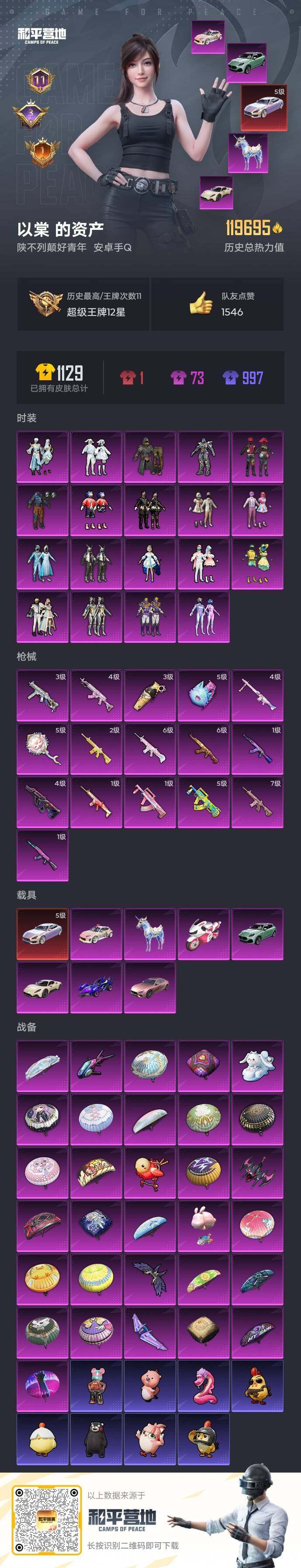 [15942080]【特价出售/店主推荐】安卓 手Q-19粉装-16特效枪-8载具-1僚机-6粉色飞行器-119695热力值-11王牌印记-211套装-303枪皮