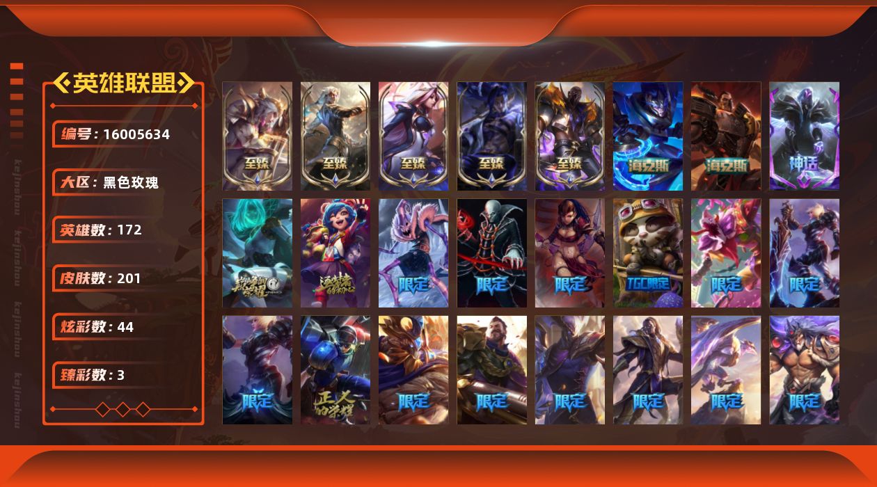[16005634]【店主推荐捡漏号!可直接换绑】未定级段位-172英雄-201皮肤-44炫彩-0终极-10神话-25限定-19传说-52史诗
