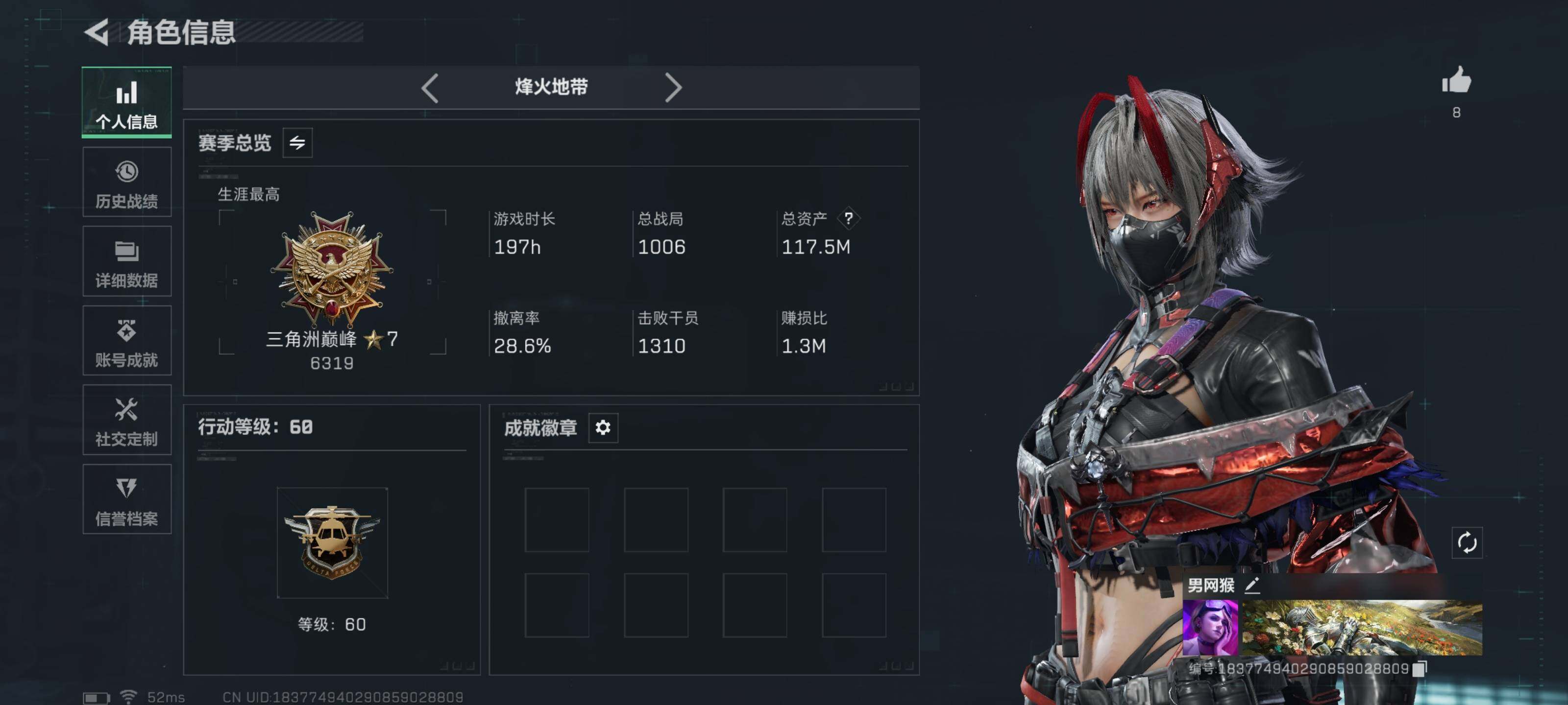 [15990110]【特价出售/店主推荐】117m总资产-25074k哈伏币-60烽火等级-三角洲巅峰-9战场等级-列兵
