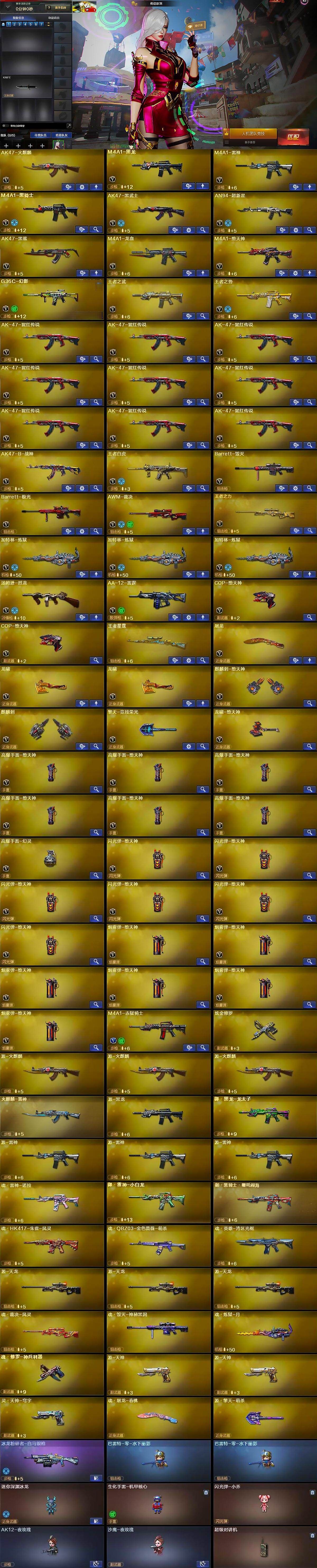 - [16639761]广东一区-66V-4王者武器数-0炫金武器数 【传说武器】:传说梦魇 【热门武器】:传说梦魇,QBZ03-金色蔷薇,M200-竞技荣光,白虎-电玩蓝兔,炼狱-迷你小钢,汤姆逊-烈龙*6,RPK-盘龙*2,加特林-炼狱,斯泰尔-蝴蝶,USP-雷暴,COP-堕天神*2,沙鹰-修罗 【音效卡】:Barrett-毁灭音效卡 【皮肤】:雷神-宇航兔皮肤,雷神-维纳斯皮肤,火麒麟-心动糖果,黑龙-暗月,战神-流金岁月皮肤,AK47-B-常胜将军-曹操,AK47-B-常胜将军-孙权,炼狱-玩具枪皮肤,修罗-星空 【角色】:电竞教官-云悠悠,乔伊教练,初恋灵狐,飞虎队-X,嘉年华灵狐,葵-赛博朋克,兰妹妹,灵狐者-黄金海岸,龙儿-小淘气,曼陀罗-礼服,潘多拉-X,潘多拉-甜心教官,斯沃特-X,蜀雪,兔囡囡,夜玫瑰-幻能朋克,樱-战斗天使 【人偶武器】:炼狱-迷你小钢,斯泰尔-蝴蝶,AWM-灵狐-15周年嘉年华,夺魂,深渊终结者手雷*2,迷你超能女侍 【暴走生化】:超级对讲机 【挑战大师】:冰龙粉碎者-白马银枪*2,VEPR-12-金魔,神圣爆裂者-末日III 【英雄级武器】:AK47-火麒麟,M4A1-黑龙*2,M4A1-雷神,无影-神兵利器,QBZ03-金色蔷薇,烈火-动感闪耀,王者之心-觉醒版,AK-47-猩红传说,王者冰魄-觉醒版,AK47-B-常胜将军,王者之烈-觉醒版,白虎-电玩蓝兔,Barrett-毁灭,M200-竞技荣光,RPK-盘龙*2,加特林-炼狱,悦蓝-惊涛骇浪-觉醒版,汤姆逊-烈龙*6,沙鹰-修罗,沙鹰-天神,USP-雷暴,COP-堕天神*2,柯尔特-电竞装甲,柯尔特-竞技荣光,天神-动感闪耀,屠龙,马来剑-夜魔,擎天-竞技荣光*3,屠龙-动感闪耀,高爆手雷-夜魔*3,高爆手雷-竞技荣光*4,手雷-动感闪耀,闪光弹-夜魔*3,闪光弹-竞技荣光*5,烟雾弹-夜魔*3,烟雾弹-竞技荣光*4 【道具】:冰冰企鹅背包,炫彩背包,女皇终结者-魔龙之吻,绿色巨人,灵魂忍者,变异宝贝,迷雾幽灵,夺命之镰,防化服*2,金色流光-枪王排位*2,枪王排位28赛季金色流光,电玩兔兔表情,动感闪耀表情,C4-沙漠,防弹头盔*4,防弹衣*4,C4工具钳*3,手雷包*3 【特殊枪械】:蝴蝶斯泰尔+6烈龙,6烈龙,2盘龙,1炼狱,1蝴蝶斯泰尔
