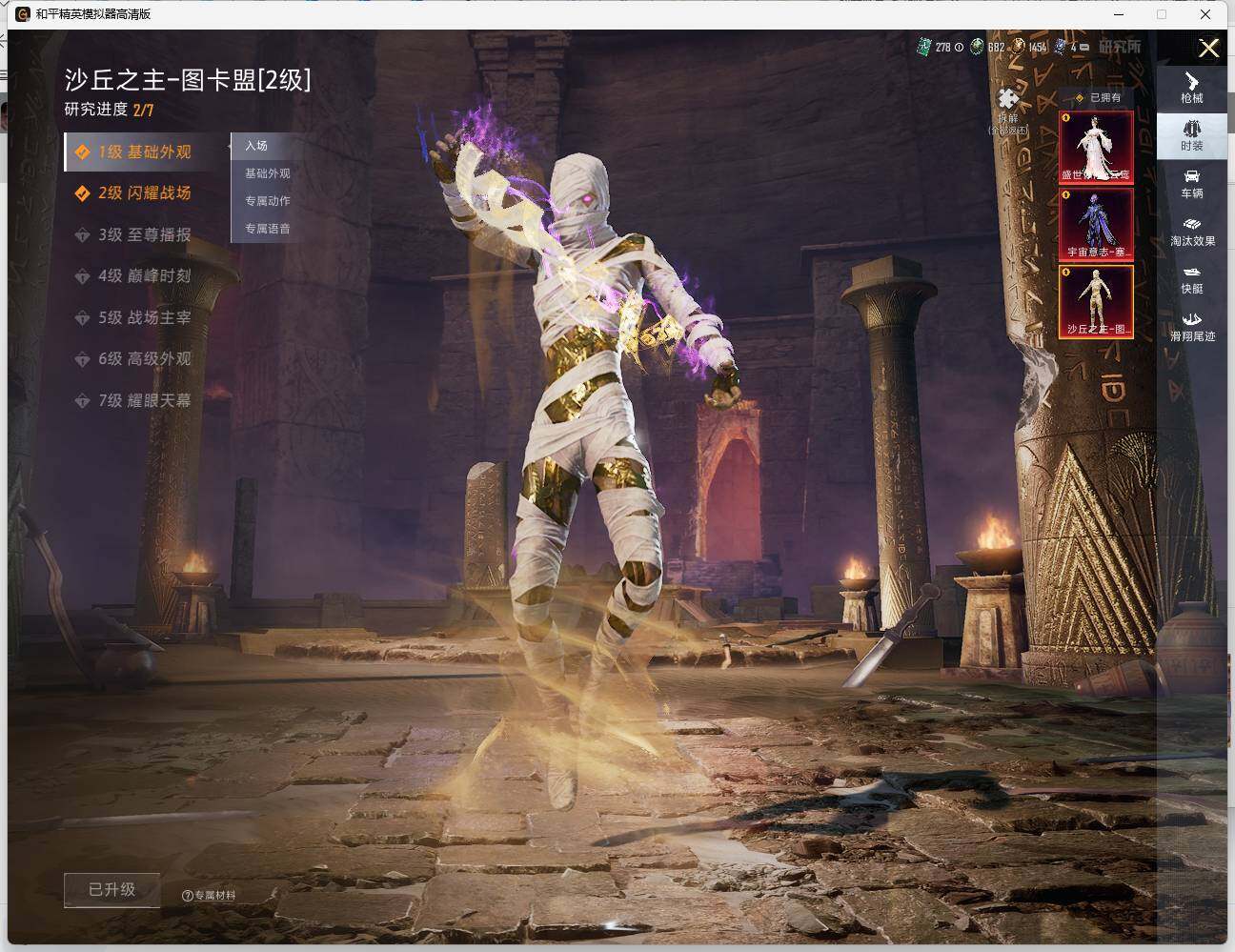 【红色神装等级】:盛世惊鸿-云鸾(一级),宇宙意志-塞卢姆(一级),沙丘之主-图卡盟(二级)