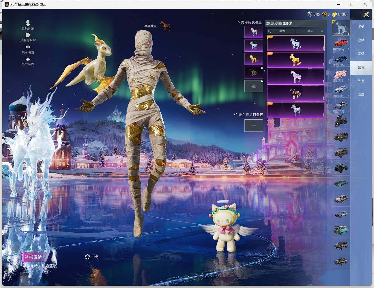【粉色载具】:仰望U7(阿盖尔紫),保时捷Cayenne(激情红),灵翼风驰(幻彩蓝),合金龙骨(蓝),盛世惊鸿摩托车,僚机-圣域龙宝,星梦玉骢,护世瑞兽,晶梦灵驹,黑曜夜骑,冰绡玉鳞