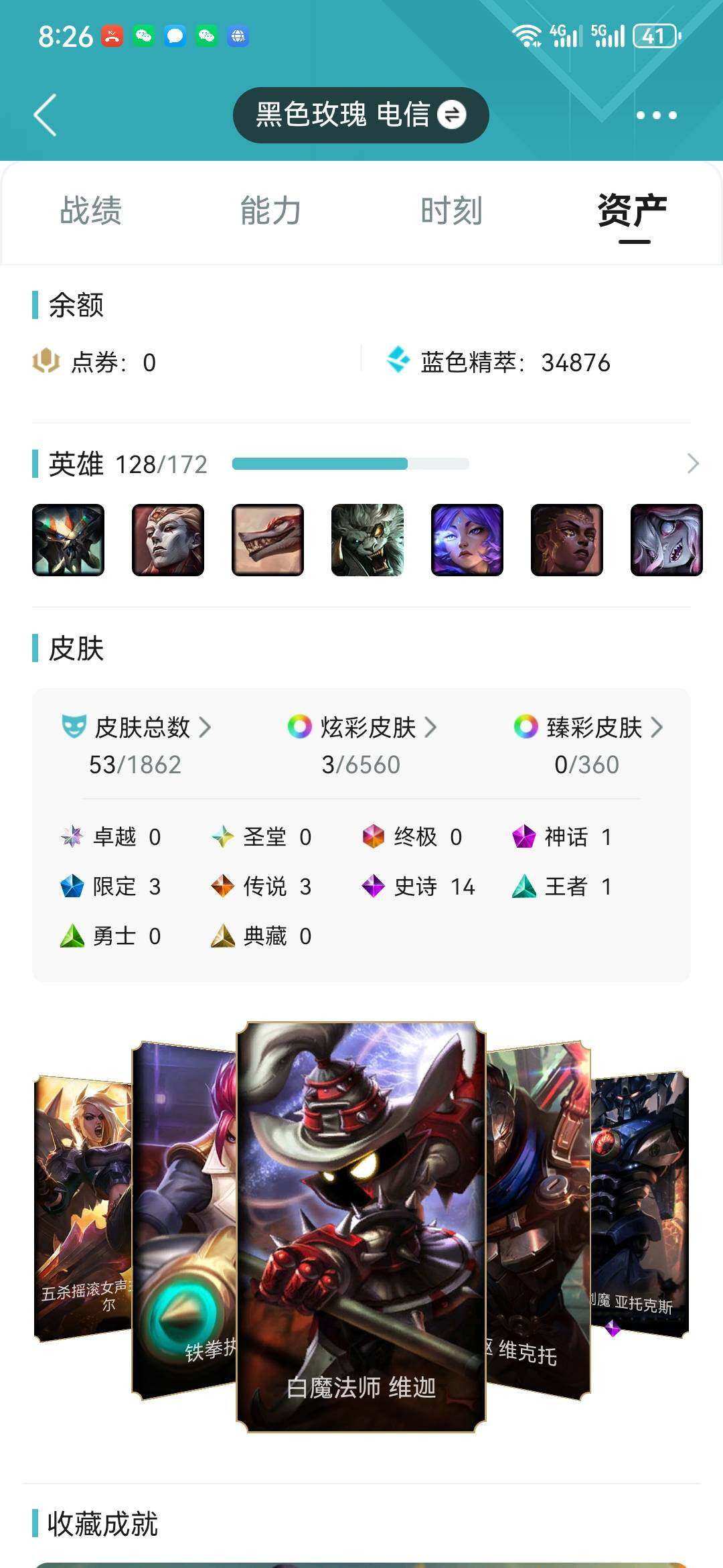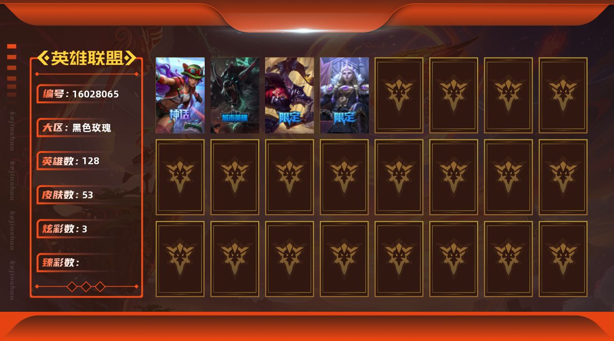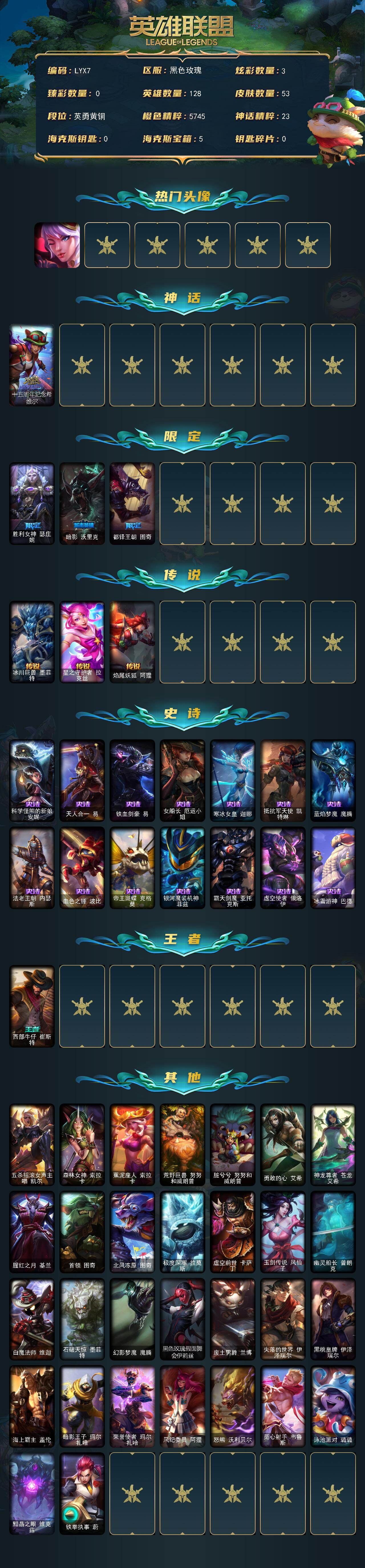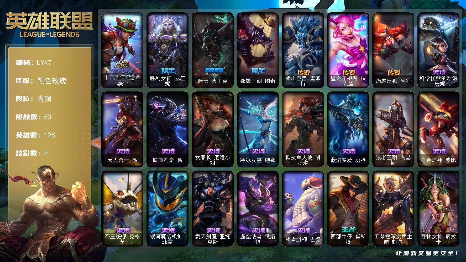 [16028065]【特价出售/店主推荐】青铜段位-128英雄-53皮肤-3炫彩-0终极-1神话-3限定-3传说-14史诗