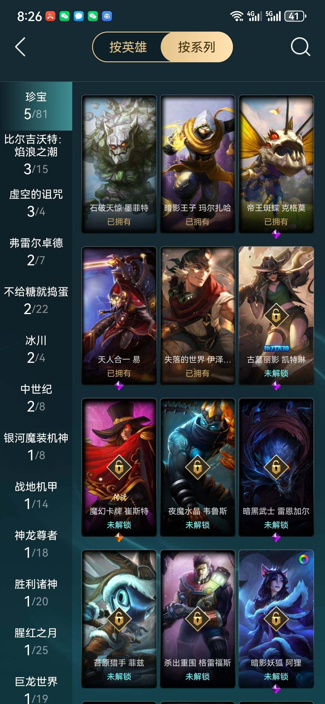 【传说皮肤】:冰川巨兽墨菲特,星之守护者拉克丝,焰尾妖狐阿狸