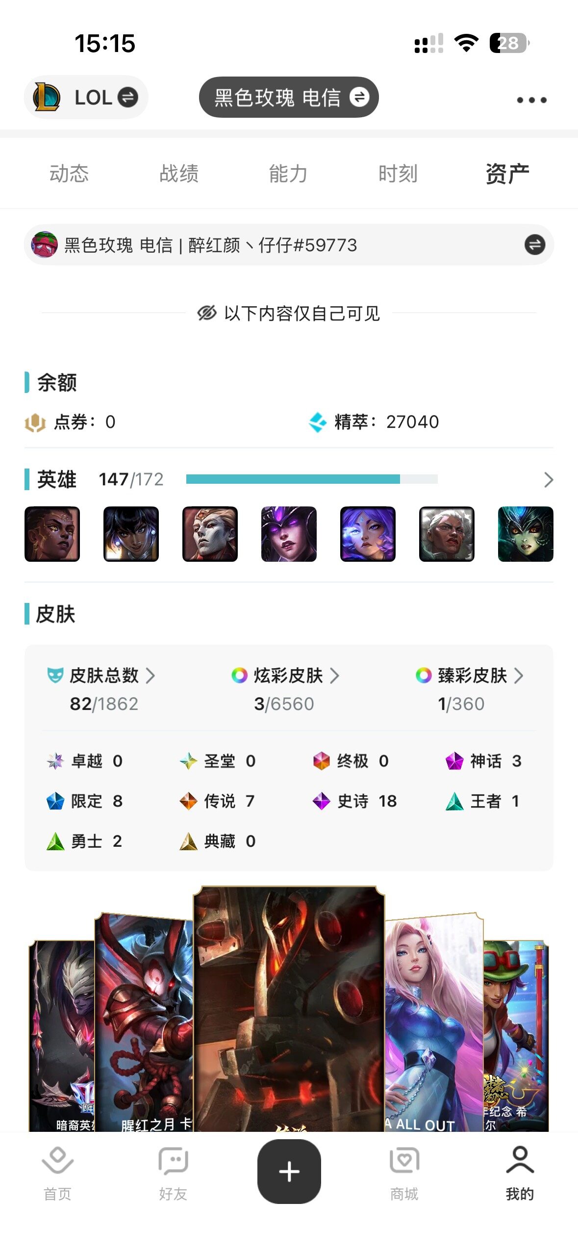 [16028126]【特价出售/店主推荐】青铜段位-147英雄-82皮肤-3炫彩-0终极-3神话-8限定-7传说-18史诗