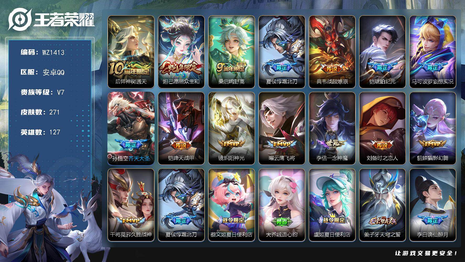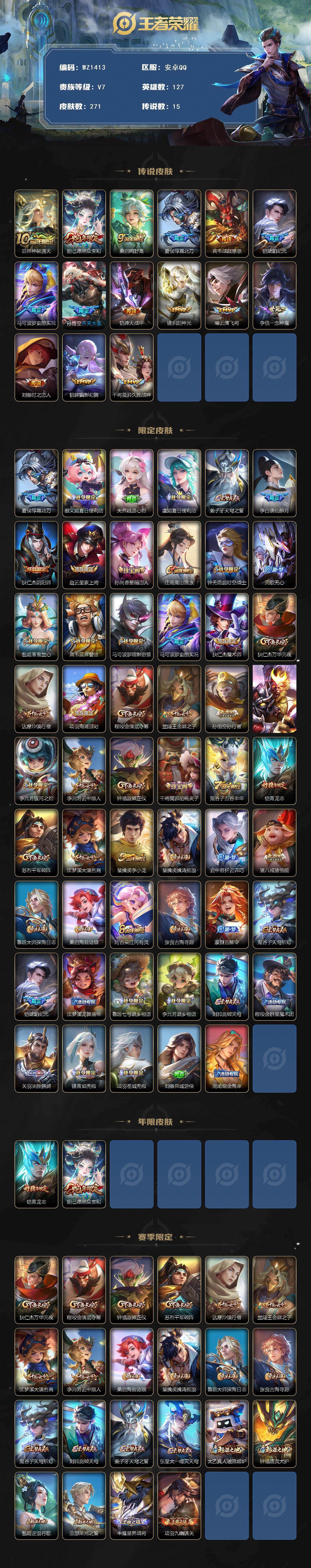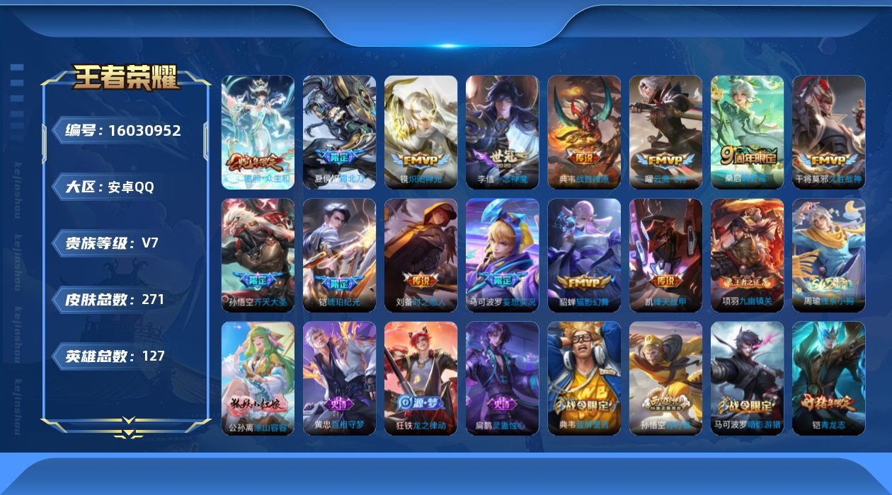 [16030952]安卓Q-V7-127英雄-271皮肤-15传说-72史诗