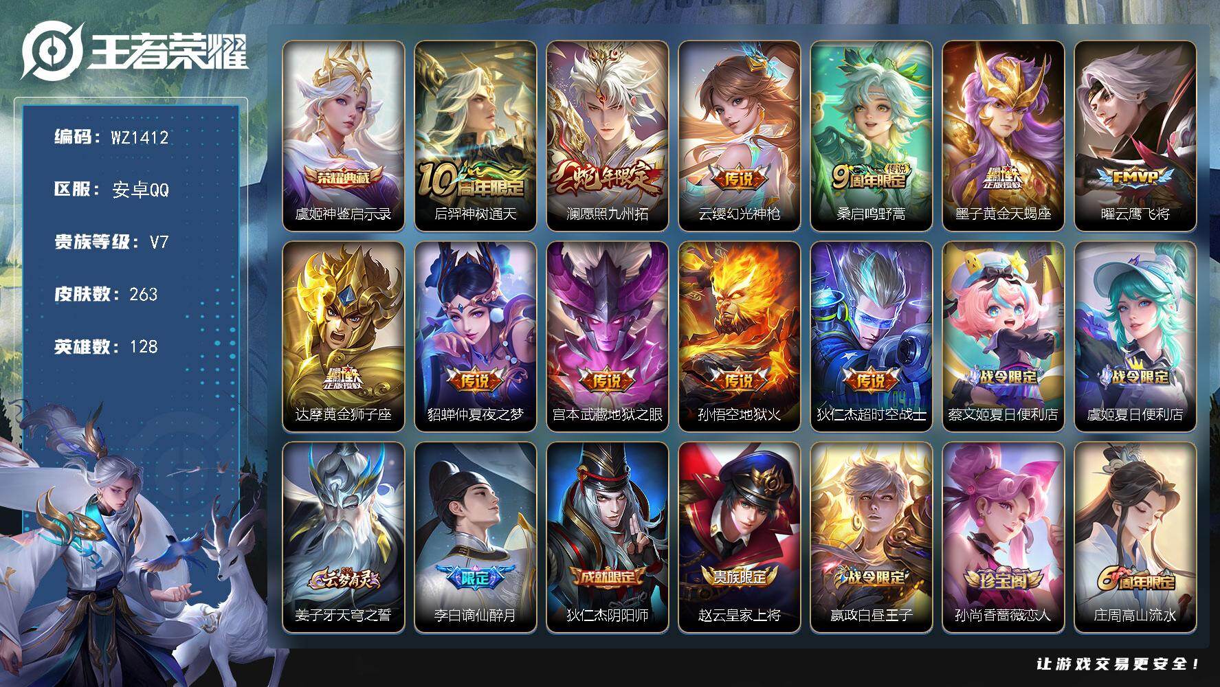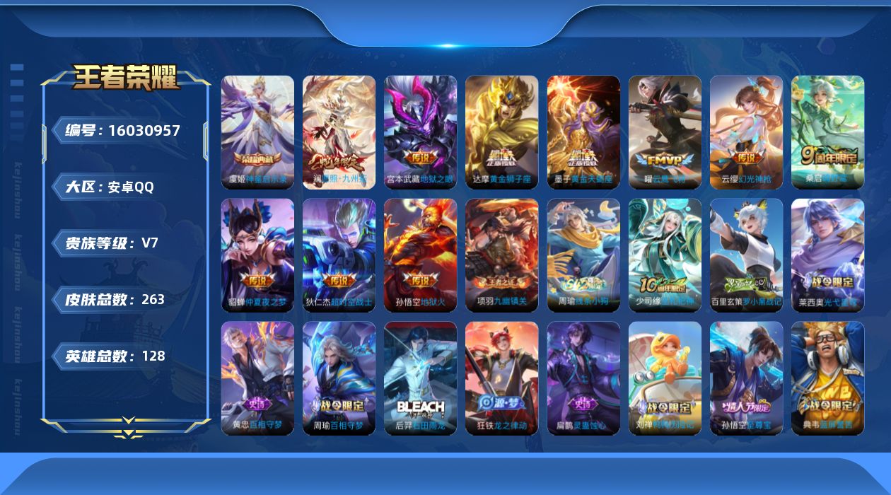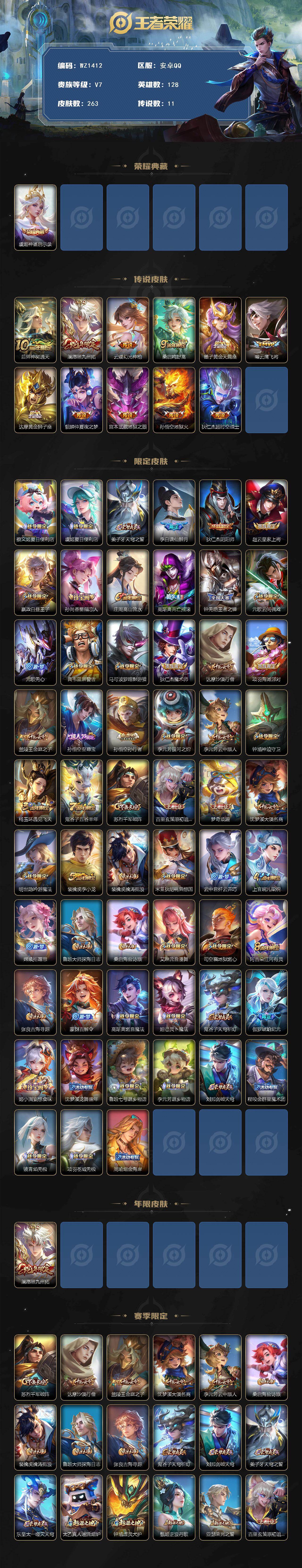 [16030957]安卓Q-V7-128英雄-263皮肤-1典藏皮肤-11传说-92史诗