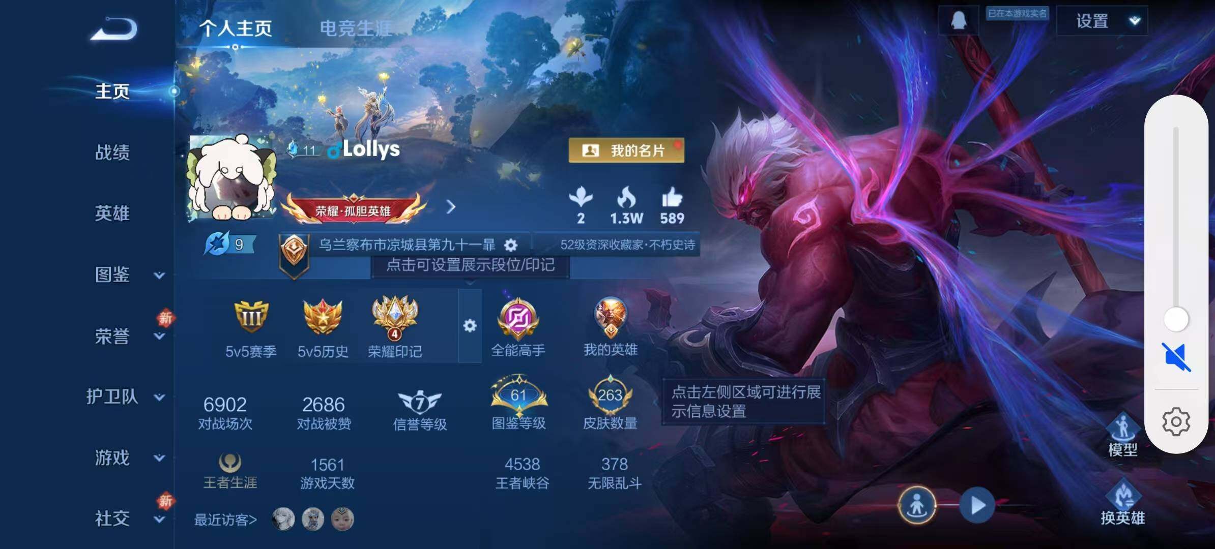 - [11530380]V10 4典藏 2无双 3珍品传说 56传说 126英雄 512皮肤 典藏英雄武则天 可修改实名 优质装备:无限飓风号(高达),杀手不太冷,鸣剑·曳影,九霄神辉(木兰典藏),碎月剑心(李白无双),花合斗,江户川柯南,怪盗基德,黄金狮子座,黄金射手座,冠军飞将,云鹰飞将(小将军),黄金白羊座,猫影幻舞,久胜战神,炽阳神光,一念神魔,云霓雀翎,末日机甲-孙尚香(绿蚂蚱),地狱火,仲夏夜之梦(大飞蛾),音你心动-小乔,地狱之眼,飞鸢探春,胖达荣荣,李逍遥,乞巧织情,时之恋人-刘备(电焊工),淬星耀世,超时空战士-狄仁杰,末日机甲-孙策,山海·炽霜斩(李信年限),山海·琳琅生(小乔年限),山海·苍雷引(电光曜子),燃星之曲,鲁班七号-时之奇旅,永恒水手月亮,澜逐花归海,艾琳觅芳踪,黄金天蝎座 珍品传说:时之奇旅-孙策 传说皮:落雪白狼,铠冥王哈迪斯,祥瑞亨通,幻光神枪 珍宝阁皮:万物之道,优雅恋人,女武神,玩趣恶龙 限定皮:愿照·山河定(司空震年限),愿照·千秋盛(女娲年限),逐霄战戟,鸣野蒿,夏侯惇霜北刀,至尊宝,凤求凰(白切鸡),武陵仙君(小桃花),异界灵契(白毛香),傲雪梅枪,补天,绯月行,白鹤梁神女,魔法小厨娘,白晶晶,时雨天司(水龙头),神威(电光马子),飞衡(韩信年限),无限倾心-项羽,瑞麟志(木兰年限),遇见飞天,高山流水,诗剑行,齐天大圣,怒海麟威,降魔,五谷丰年,青龙志(铠年限),冰锋战神,游园惊梦,梁祝,御风骁将(吕布年限),龙胆,李小龙,逐梦之影,玄武志(苏烈年限),朱雀志(守约年限),永曜之星,辉光之辰,默契交锋-兰陵王,默契交锋-花木兰,孙行者,猪悟能,大圣娶亲,引擎之心,天魔缭乱,青春决赛季,冰霜恋舞曲,匿光追影者,寅虎·瑞焰(虎皮蛋子),时之祈愿-瑶(瑶传限),玉兔公主,山海·玄木吟(马可年限) 史诗皮:赞萌露比,鸭鸭历险记-刘禅,器灵·浮梦炉,糖绘人间,狼魂孤将,绮世丹青,瑰影绮梦,化蝶舞,星界战将,龙之律动,雪豹·霜爪,藏狐·褐绒,石田雨龙,百相守梦-周瑜,戍鼓铭心,茶境仙,撼地雄心,破空之剑,战舞者,蒙犽顽岩魄,埋骨钱,芈月浮光幕影,怒海争锋,谪仙醉月,蔬乡物语(鲁班七号),百相守梦-百里守约,炽弈燎原,百相守梦-黄忠,遇见神鹿,紫霞仙子,苍穹之光,电玩小子(小书包),白龙吟,黄金分割率,特工魅影,千年之狐,永昼,百相守梦(刘备),电