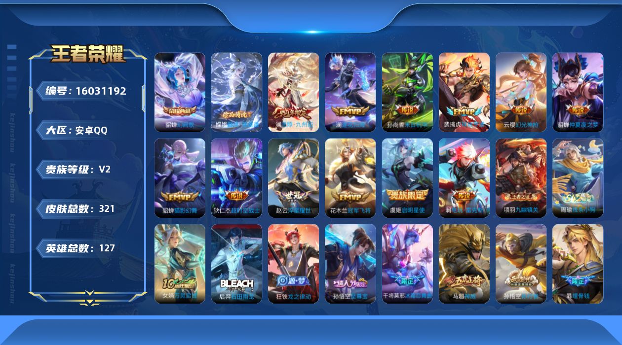 [16031192]小国雅典娜-安卓Q-V2-127英雄-321皮肤-1典藏皮肤-1珍品传说-13传说-99史诗