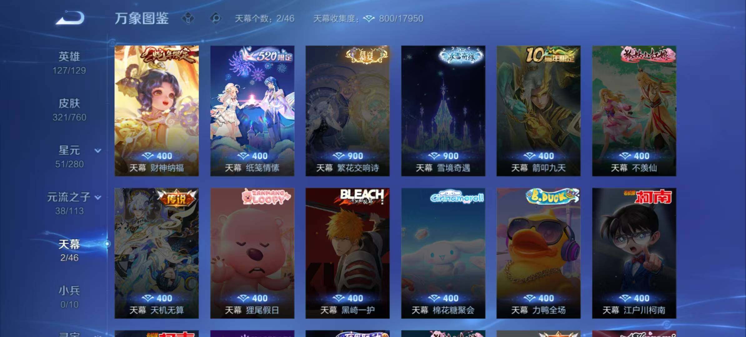 裴擒虎李小龙,上官婉儿梁祝,马超神威,韩信飞衡,上官婉儿天狼绘梦者,孙悟空大圣娶亲,花木兰默契交锋,孙悟空至尊宝,干将莫邪冰霜恋舞曲,孙悟空孙行者,杨玉环寅虎·心曲,澜愿照·九州拓