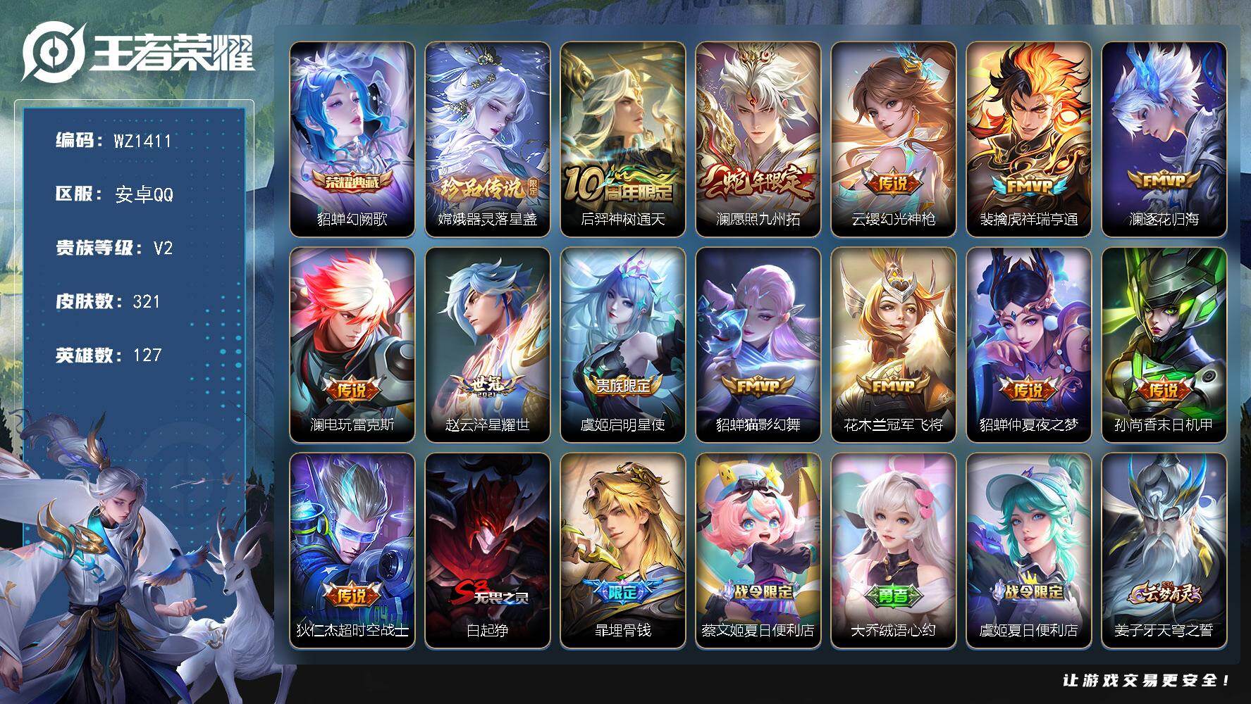 [16031192]小国雅典娜-安卓Q-V2-127英雄-321皮肤-1典藏皮肤-1珍品传说-13传说-99史诗 【英雄全皮】:澜全皮 【荣耀典藏】:貂蝉幻阙歌 【珍品传说】:嫦娥器灵落星盏 【传说皮肤】:后羿神树通天,澜愿照九州拓,云缨幻光神枪,裴擒虎祥瑞亨通,澜逐花归海,澜电玩雷克斯,赵云淬星耀世,虞姬启明星使,貂蝉猫影幻舞,花木兰冠军飞将,貂蝉仲夏夜之梦,孙尚香末日机甲,狄仁杰超时空战士 【限定皮肤】:白起狰,暃埋骨钱,蔡文姬夏日便利店,大乔绒语心约,虞姬夏日便利店,姜子牙天穹之誓,狄仁杰阴阳师,虞姬凯尔特女王,赵云皇家上将,墨子神迹守卫,嬴政优雅恋人,嬴政白昼王子,高渐离死亡摇滚,钟无艳王者之锤,孙膑妖精王,扁鹊奇幻香踪,吕布猎兽之王,元歌云间偶戏,夏侯惇朔风刀,曹操烛龙,典韦穷奇,马可波罗暗影游猎,狄仁杰魔术师,狄仁杰万华元夜,达摩沙漠行僧,项羽海滩派对,老夫子醍醐杖,老夫子航海奇遇记,程咬金演武夺筹,韩信飞衡,花木兰默契交锋,亚瑟潮玩骑士王,孙悟空至尊宝,孙悟空大圣娶亲,孙悟空孙行者,牛魔御旌,李元芳银河之约,李元芳云中旅人,虞姬启明星使,钟馗驱傩正仪,杨玉环遇见飞天,杨玉环寅虎心曲,杨戬潮玩骑兵,干将莫邪冰霜恋舞曲,雅典娜黎明之约,太乙真人饕餮,太乙真人华丽摇滚,鬼谷子原初探秘者,鬼谷子五谷丰年,苏烈千军破阵,百里玄策原初追逐者,弈星混沌棋,梦奇顽趣,沈梦溪星空之诺,沈梦溪大漠名商,沈梦溪匿光破解者,明世隐疑决卦,裴擒虎李小龙,裴擒虎擒涛扼浪,狂铁御狮,米莱狄御霄,云中君纤云弄巧,盾山御銮,猪八戒西部大镖客,上官婉儿梁祝,上官婉儿天狼绘梦者,西施玲珑珍味,鲁班大师探海日志,桑启海盐诗旅,戈娅驭风魔法,艾琳流音漫舞,司空震地狱燃心,阿古朵江河有灵,张良古海寻踪,蒙犽百解令,蒙恬荣光圣徽,鬼谷子天穹祈灯,姬小满妄想食味,百里玄策超元猎域,沈梦溪龙舞盛年,刘邦剑破天穹,程咬金群星魔术团,镜青焰无极,项羽苍威无极,芈月浮光幕影,周瑜熔金海岸 【年限皮肤】:韩信飞衡,杨玉环寅虎心曲,澜愿照九州拓 【赛季限定】:孙膑妖精王,虞姬凯尔特女王,白起狰,太乙真人饕餮,曹操烛龙,典韦穷奇,狂铁御狮,米莱狄御霄,牛魔御旌,盾山御銮,夏侯惇朔风刀,弈星混沌棋,明世隐疑决卦,老夫子醍醐杖,鬼谷子原初探秘者,狄仁杰万华元夜,程咬金演武夺筹,钟馗驱傩正仪,苏烈千军破阵,达摩沙漠行僧,沈梦溪大漠名商,