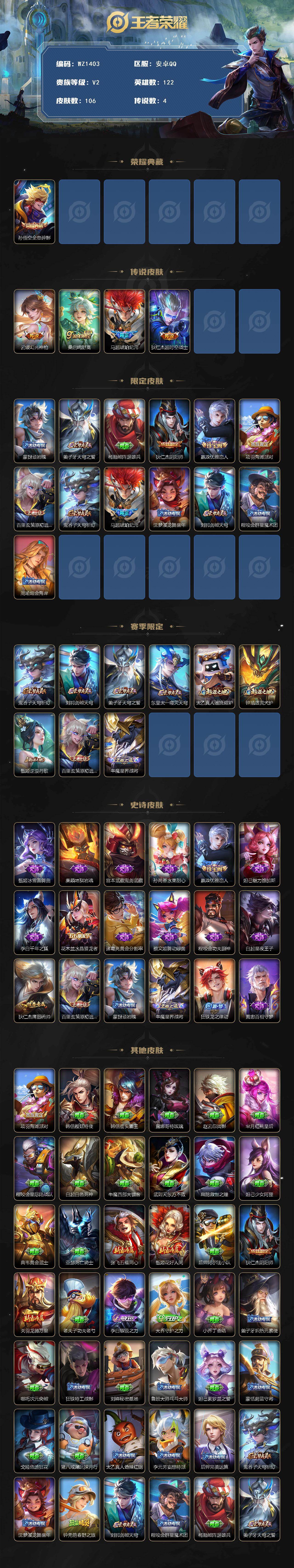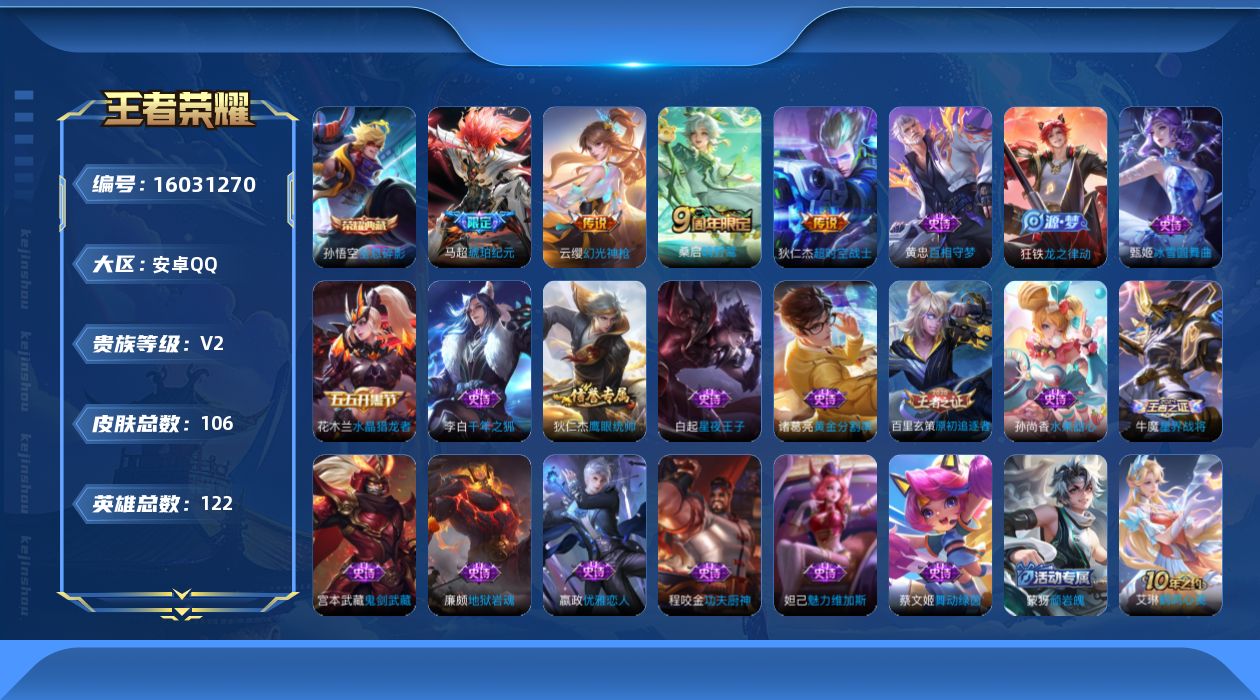 [16031270]安卓Q-V2-122英雄-106皮肤-1典藏皮肤-4传说-18史诗