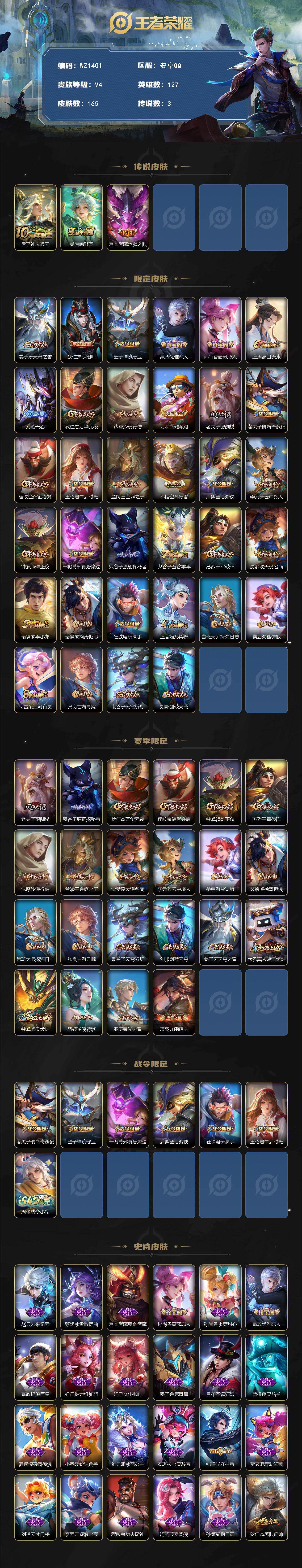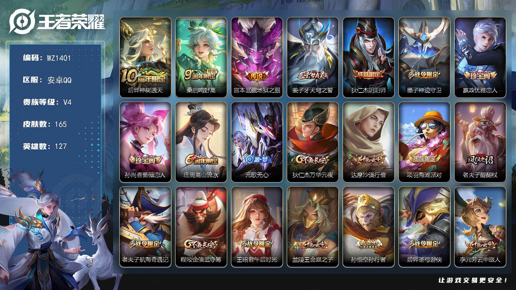 [16031421]安卓Q-V4-至尊星耀V段位-127英雄-165皮肤-3传说-37史诗