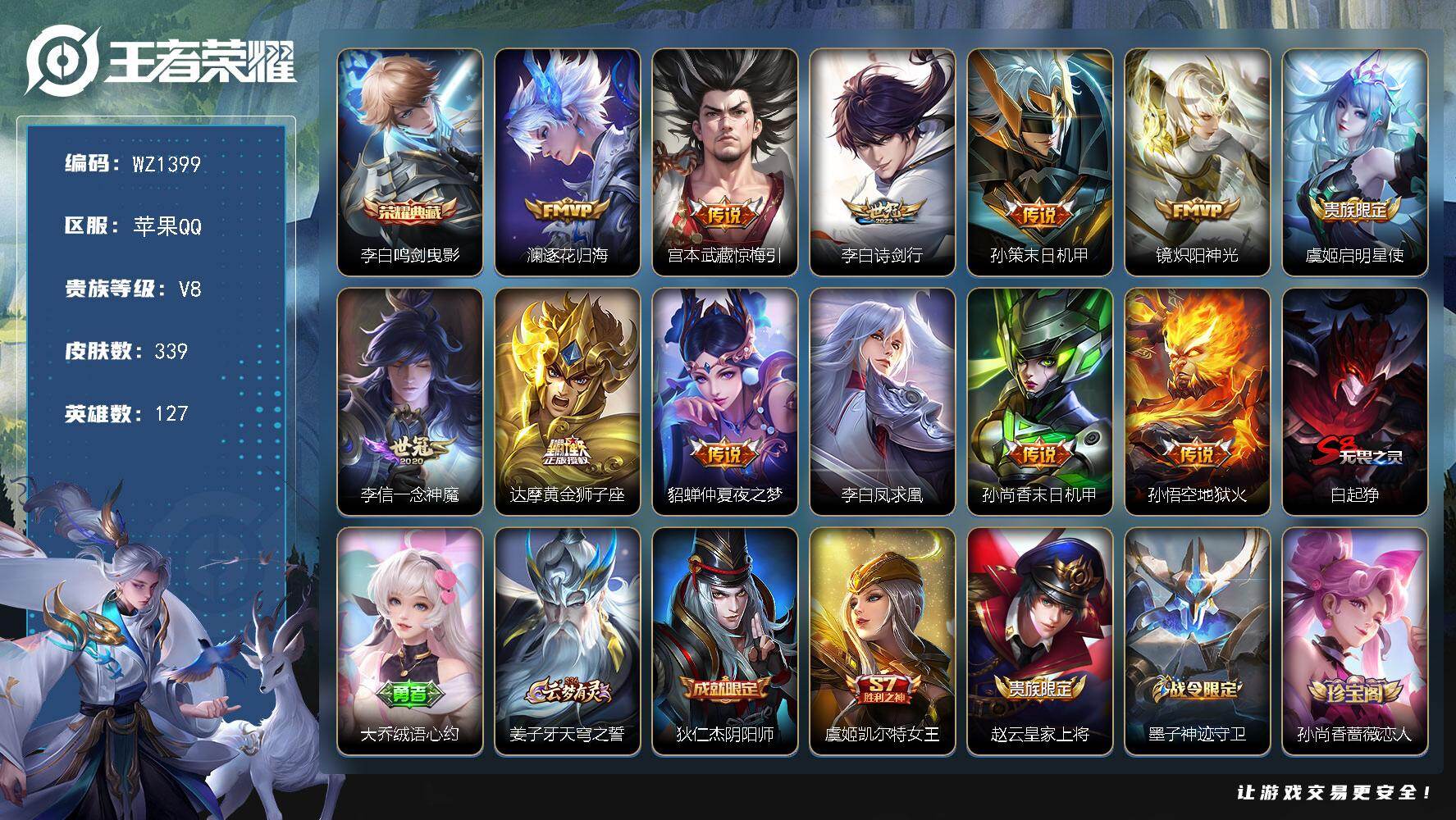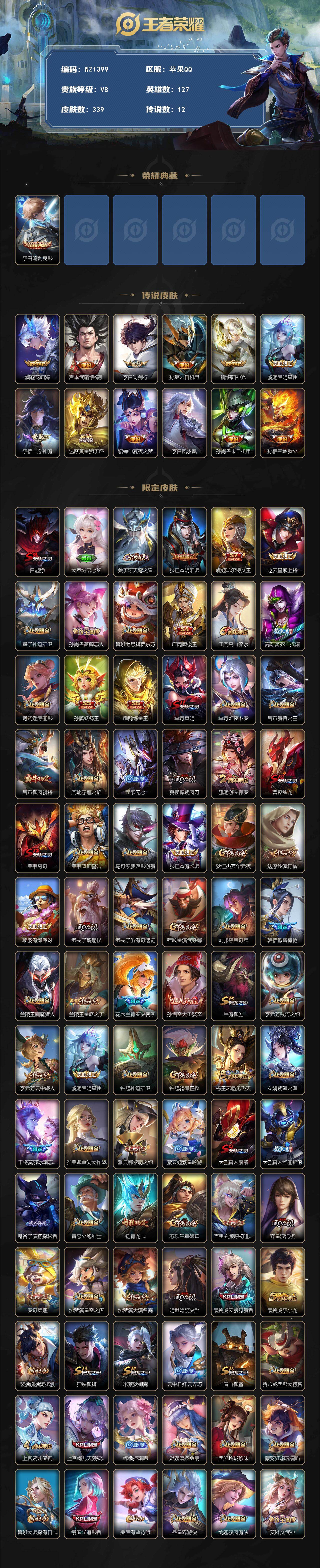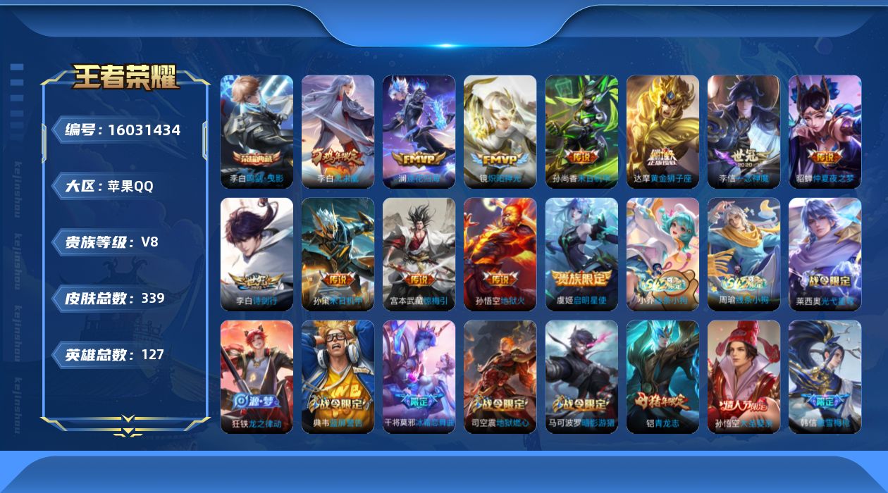 [16031434]苹果Q-V8-127英雄-339皮肤-1典藏皮肤-12传说-85史诗