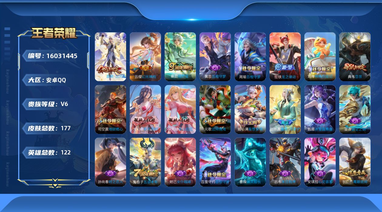 [16031445]安卓Q-V6-122英雄-177皮肤-3传说-45史诗