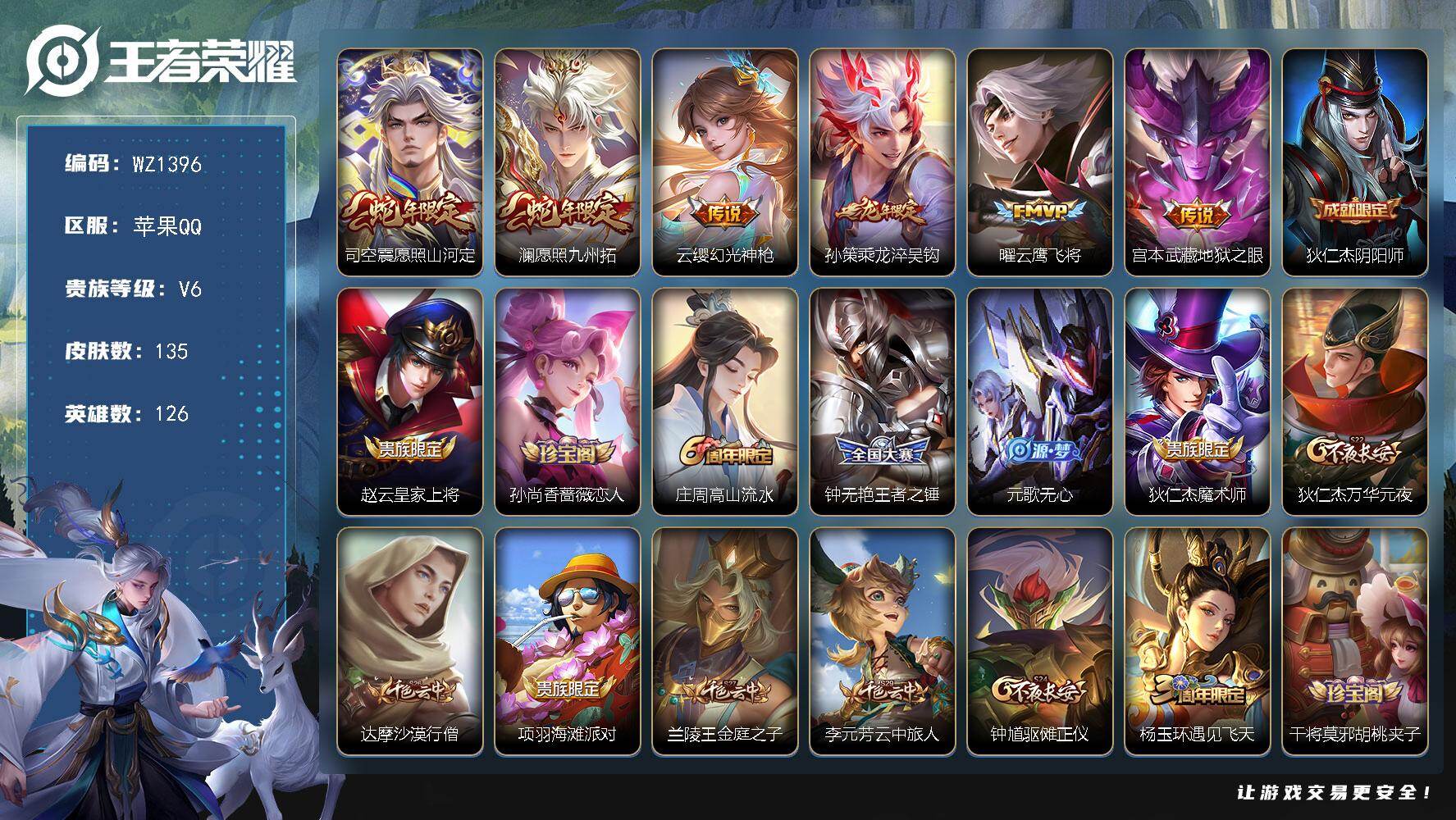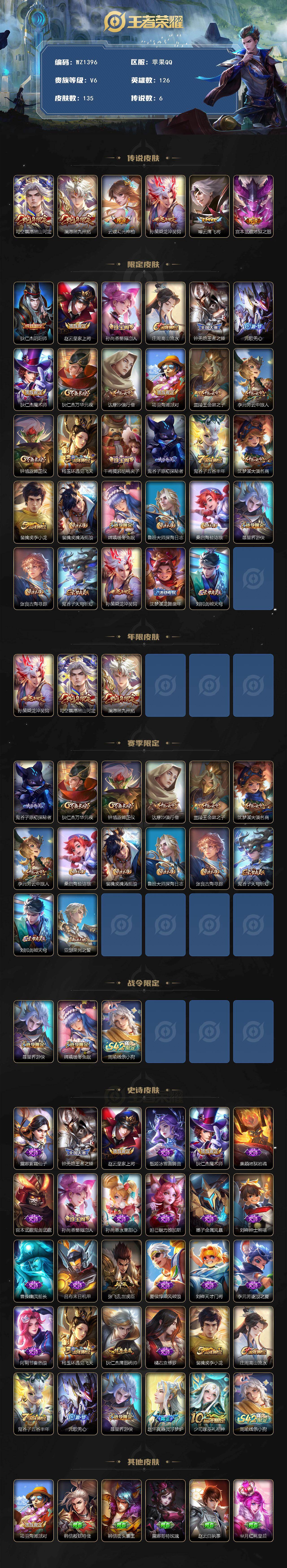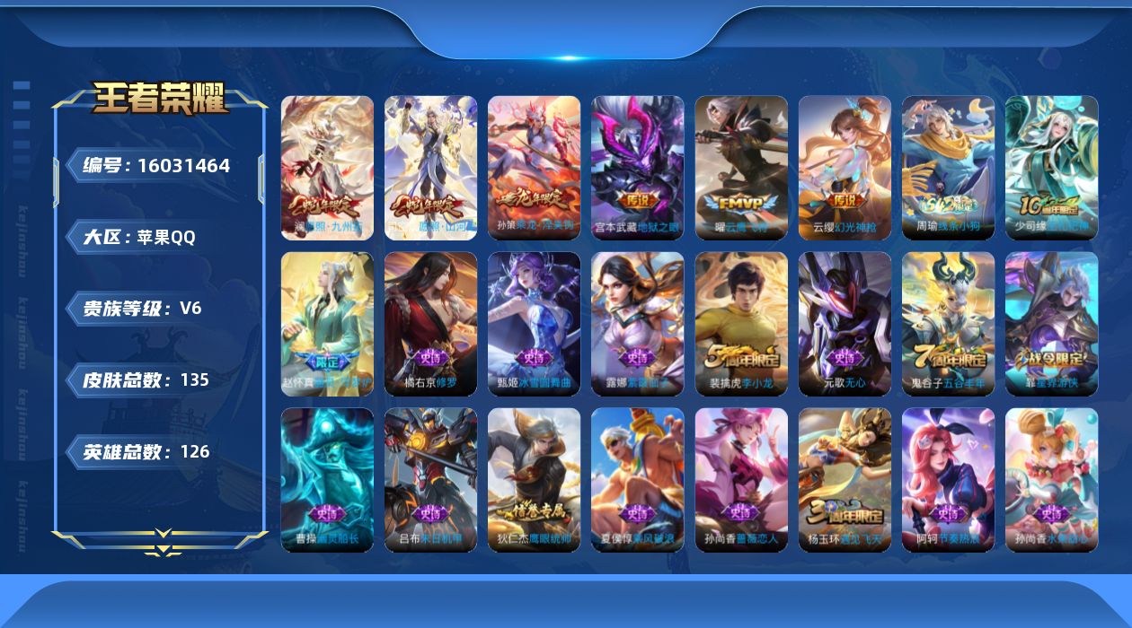 [16031464]苹果Q-V6-126英雄-135皮肤-6传说-29史诗