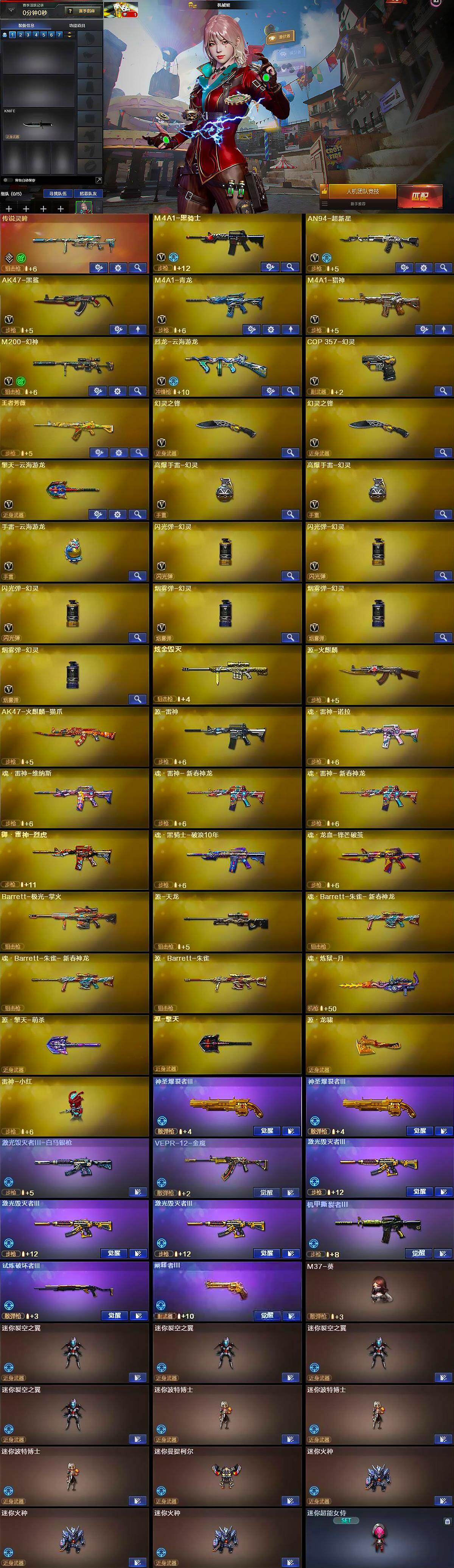 【英雄级武器】:M4A1-黑骑士,AN94-超新星,AK47-黑鲨,M4A1-青龙,M4A1-猎神,M200-幻神,烈龙-云海游龙,COP 357-幻灵,幻灵之锋*2,擎天-云海游龙,高爆手雷-幻灵*2,手雷-云海游龙,闪光弹-幻灵*3,烟雾弹-幻灵*3