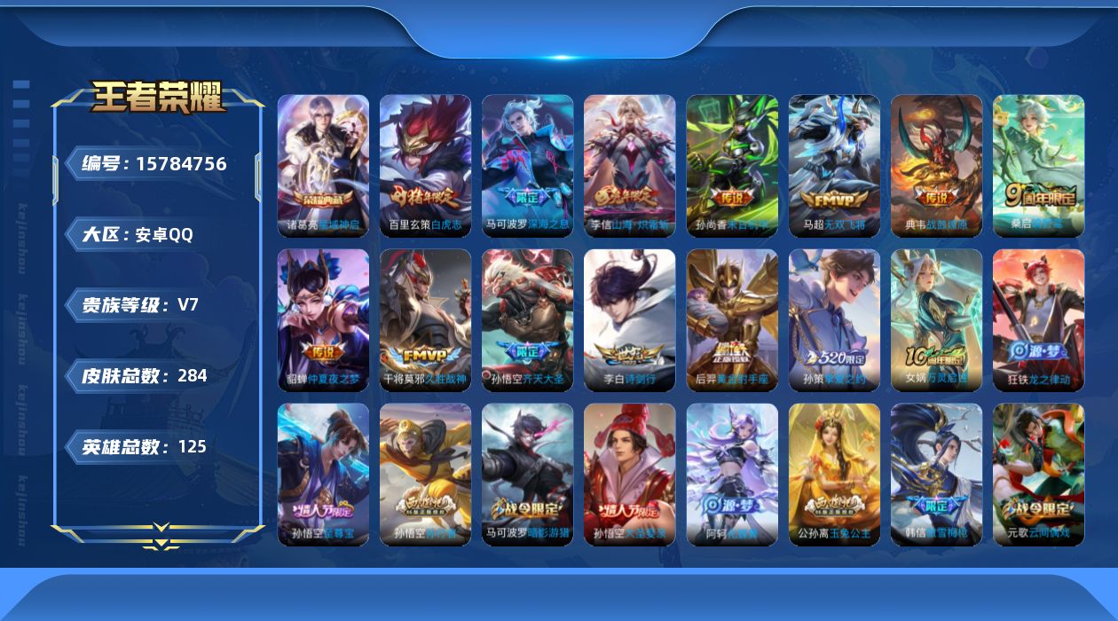 [15784756]安卓Q-284皮肤-1典藏皮肤-14传说-73史诗