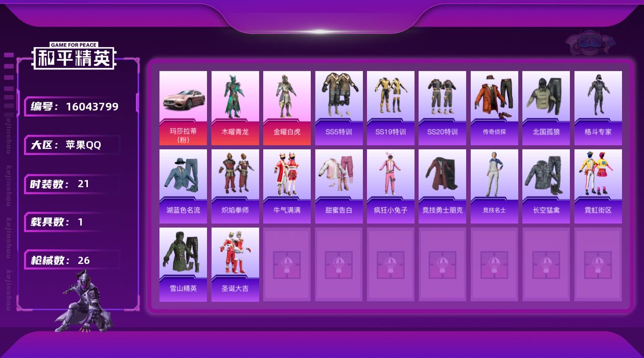 [16043799]【特价出售/店主推荐】苹果 手Q-2粉装-0特效枪-1载具-0粉色飞行器-8802热力值-2王牌印记-21套装-26枪皮