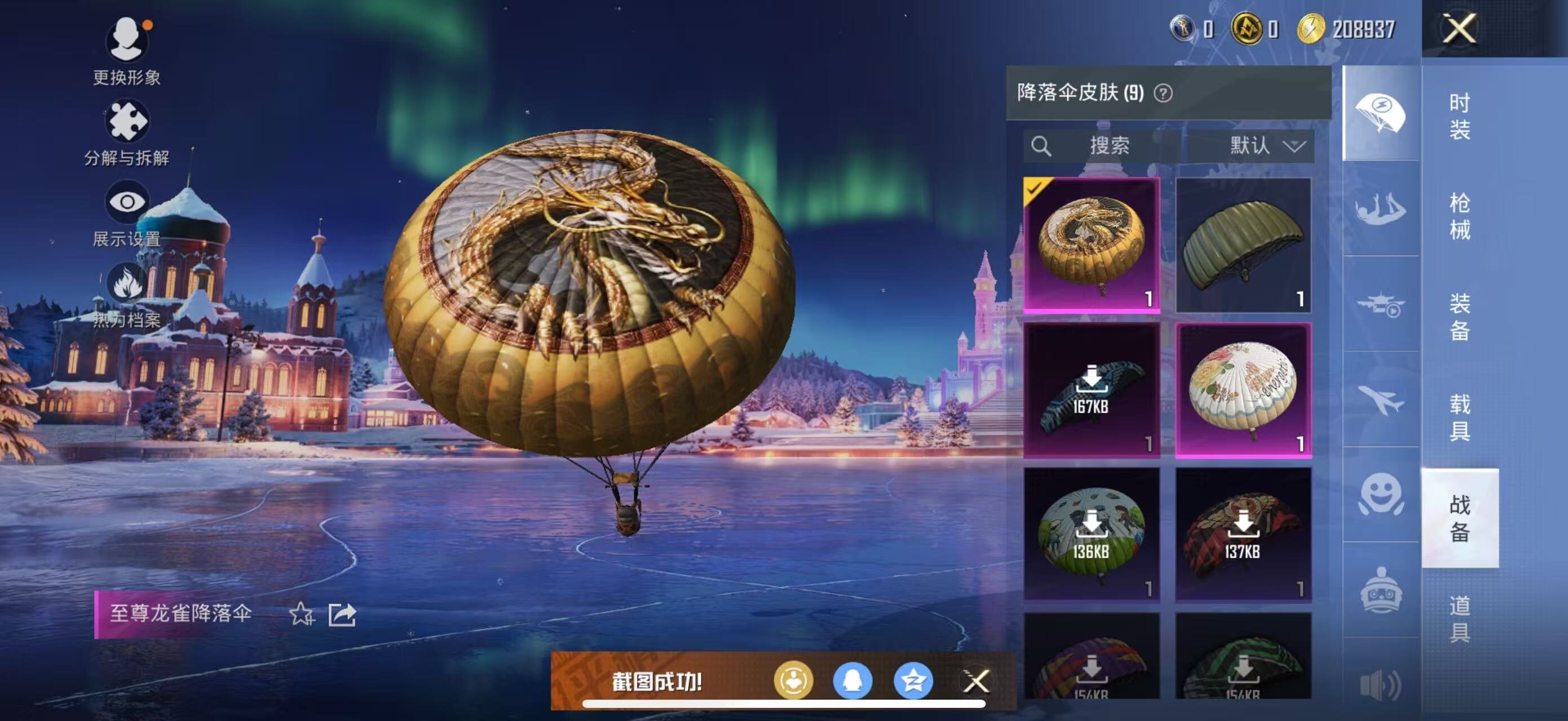【粉色降落伞】:银河战甲降落伞,至尊龙雀降落伞,春暖花开降落伞