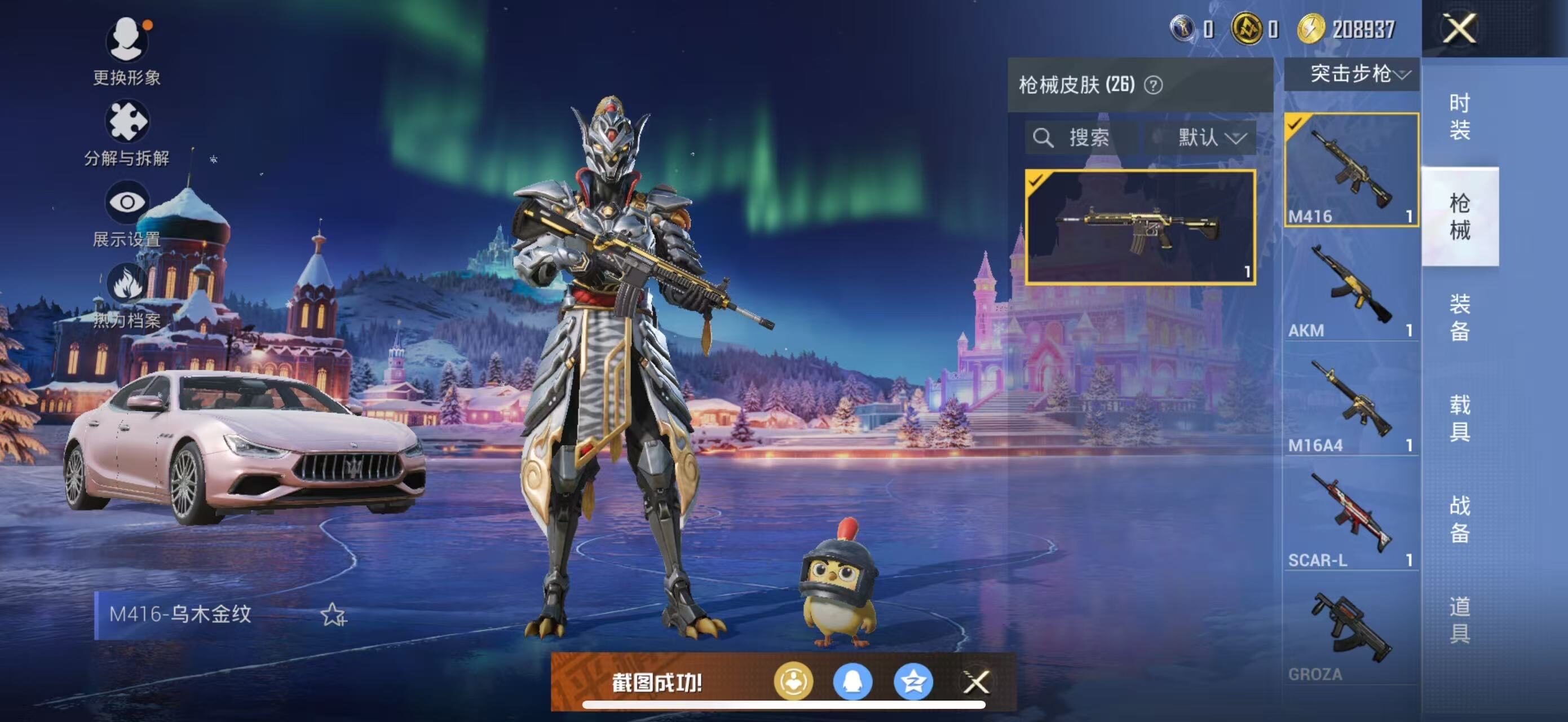 【稀有枪皮】:SCAR-L-红色方程式,QBZ-银河战甲,M762-拳皇97,G36C-雪国精灵,UZI-幻影战神,UMP45-春暖花开,汤姆逊-幻影战神,Kar98K-红色方程式,Mini14-耀粉歌者,S686-生命誓言,S1897-春暖花开,S12K-破晓战魂,S12K-幻影战神,M249-拳皇97,P92-拳皇97