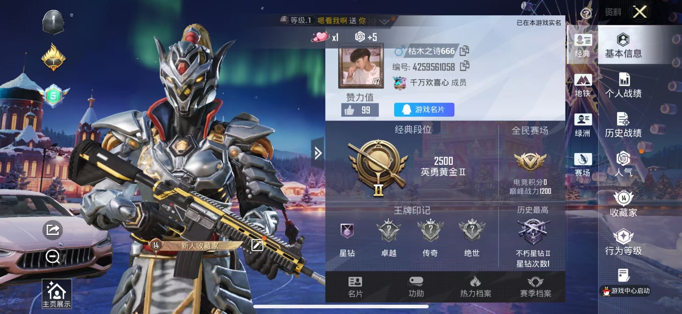 - [11274939]可二次 可修改实名 排位资格:有 13V武器 2皮肤 可排位 枪王 武器:机械迷城-穹宇,AWM-裁决,M4A1-黑龙,屠龙,AK47-无影,AK47-火麒麟,M200-幻神,王者冰魄-觉醒版,加特林-炼狱,龙啸