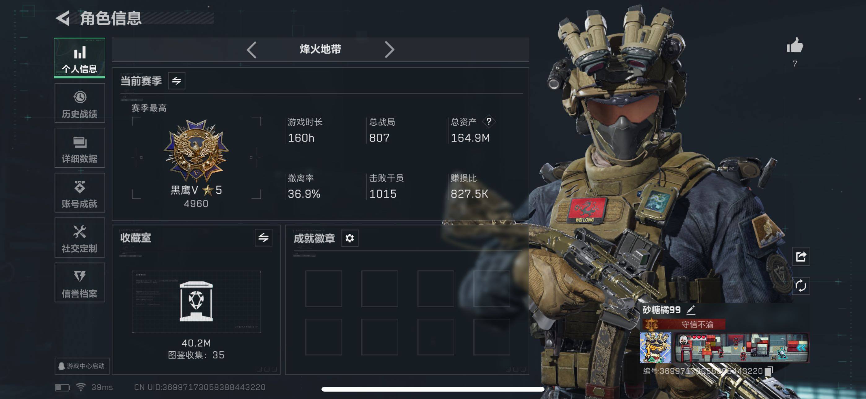 [16045819]1典藏/多子弹/164m总资产-20018k哈伏币-60烽火等级-黑鹰-7战场等级-列兵