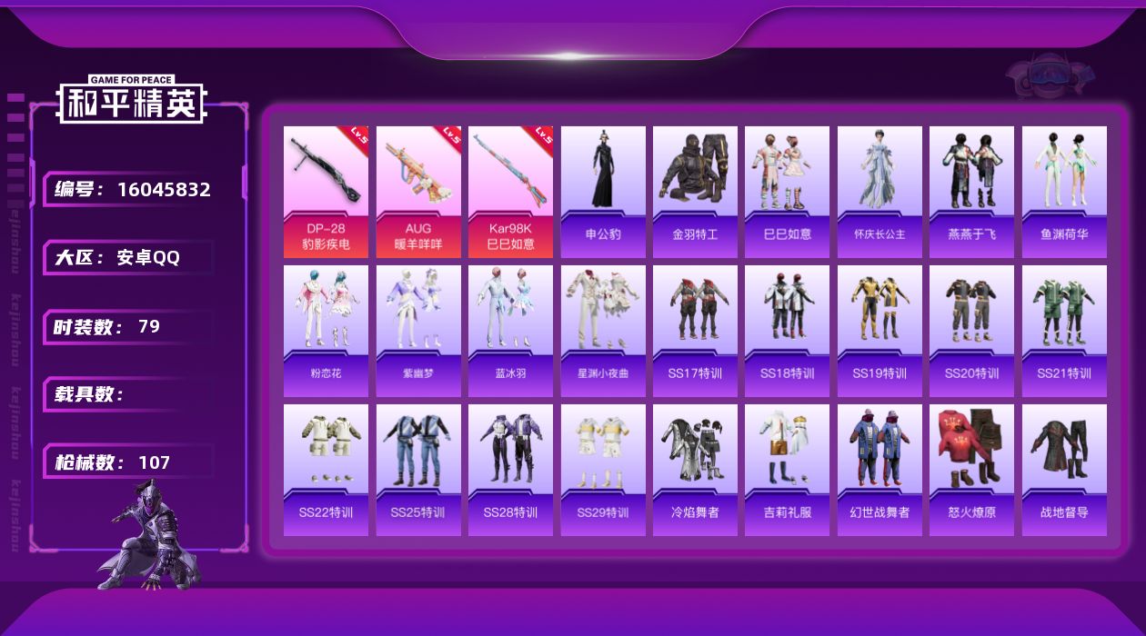[16045832]【特价出售/店主推荐】安卓 手Q-0粉装-3特效枪-0载具-1粉色飞行器-28813热力值-6王牌印记-79套装-107枪皮