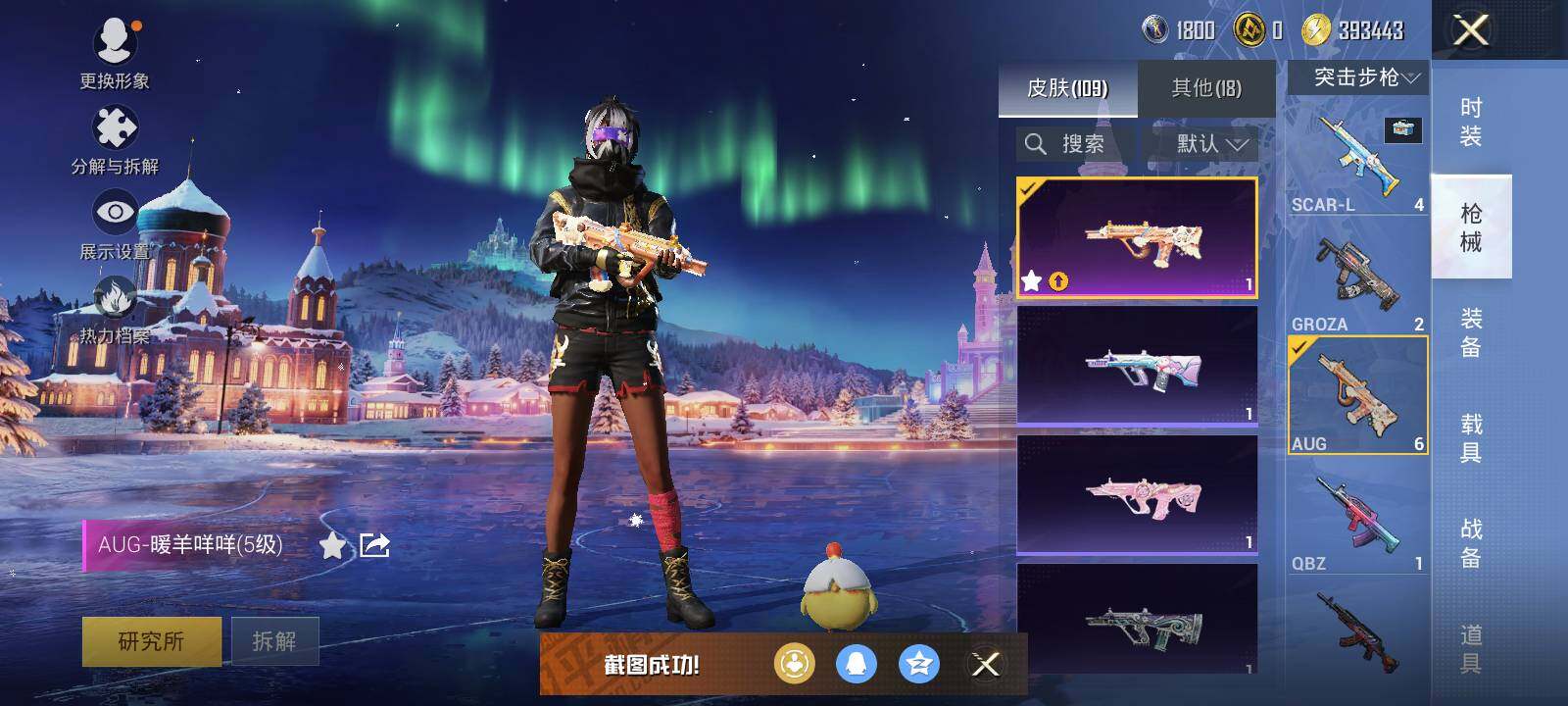 【粉色枪皮等级】:AUG-暖羊咩咩(五级),Kar98K-巳巳如意(五级),DP-28-豹影疾电(五级)