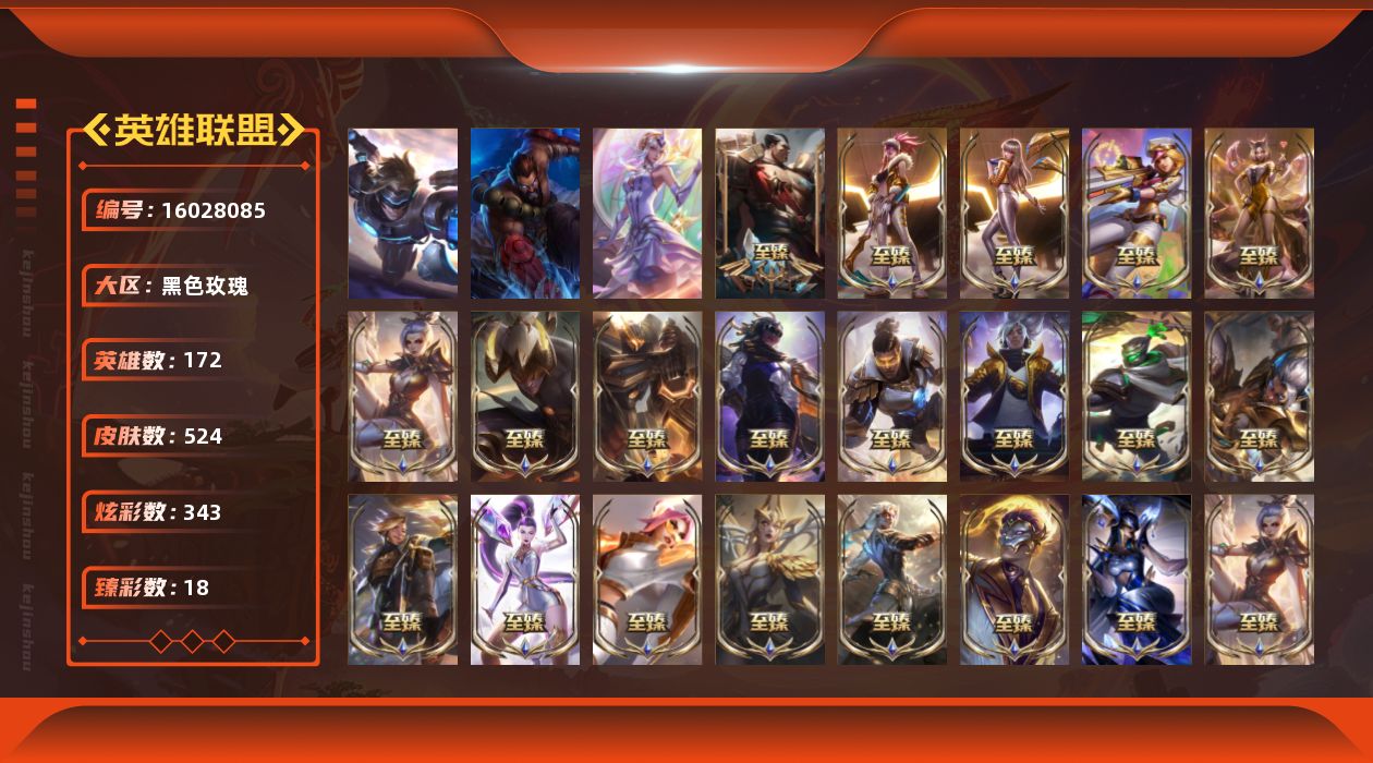 [16028085]【特价出售/店主推荐】铂金段位-172英雄-524皮肤-343炫彩-3终极-36神话-58限定-55传说-121史诗