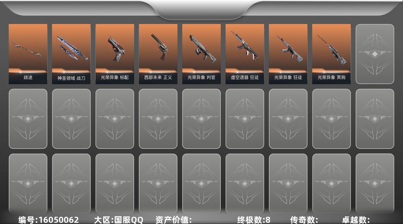 [16050062]【套装】:光荣异象套装 【英雄】:炼狱,暮蝶,钛狐,壹决,捷风,不死鸟,贤者,猎枭,芮娜,尚勃勒,霓虹,钢锁 【近战武器】:近战武器-光荣异象 歧途,近战武器-神圣领域 战刀 【狂徒】:狂徒-虚空遗器,狂徒-光荣异象 【幻影】:幻影-神圣领域 【戍卫】:戍卫-月球哨兵,戍卫-折光棱晶 【獠犬】:獠犬-神圣领域 【冥驹】:冥驹-光荣异象,冥驹-星云暗涌 【飞将】:飞将-末日之翼 【莽侠】:莽侠-月球哨兵 【战神】:战神-神圣领域 【判官】:判官-光荣异象,判官-诡秘蛇影 【雄鹿】:雄鹿-月球哨兵 【骇灵】:骇灵-星云暗涌 【蜂刺】:蜂刺-星云暗涌,蜂刺-折光棱晶 【标配】:标配-光荣异象,标配-折光棱晶 【正义】:正义-西部未来,正义-月球哨兵 【鬼魅】:鬼魅-星云暗涌 【狂怒】:狂怒-神圣领域 【短炮】:短炮-末日之翼 【卡面】:南瓜盛典 卡面,最高舞台 卡面,梦幻奶茶 卡面,无畏契约GO!第一卷:零 卡面,代号红色 卡面,新兵报到 卡面,V契约 卡面,无畏契约 卡面 【喷漆】:超级粉丝 喷漆,捷风差距 喷漆,拼一枪 喷漆,买装还是存钱 喷漆,胜利属于无畏契约 喷漆,GLHF 喷漆,无畏契约 喷漆 【挂饰】:薰衣草之心 挂饰,袖珍捷风 挂饰,第九季//第一幕 纪念币 挂饰,天外飞客 挂饰,无畏契约 纪念币 挂饰