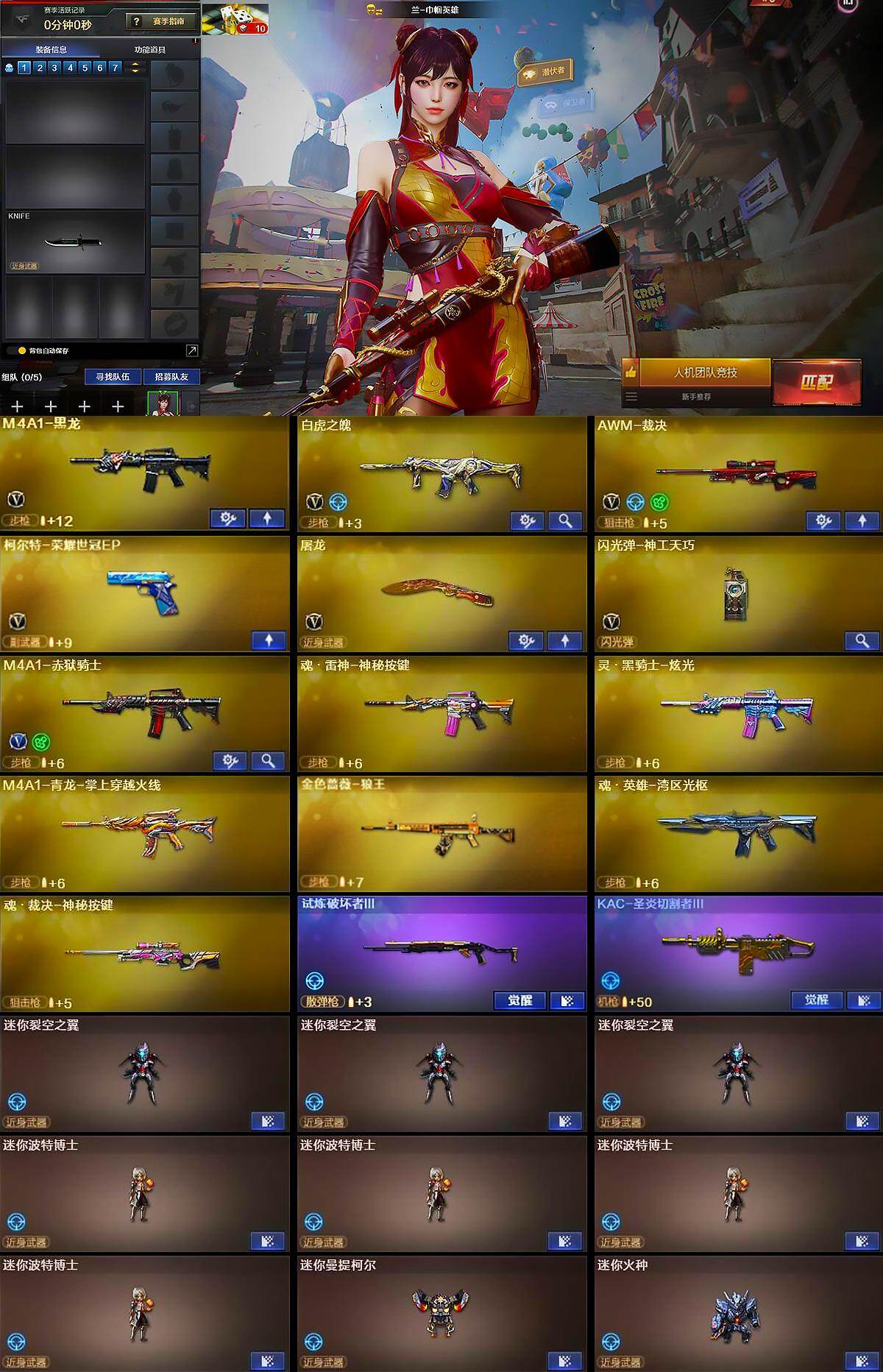 【英雄级武器】:M4A1-黑龙,白虎之魄-觉醒版,AWM-裁决,柯尔特-荣耀世冠EP,屠龙,闪光弹-神工天巧,烟雾弹-荣耀世冠EP*5,M4A1-赤狱骑士