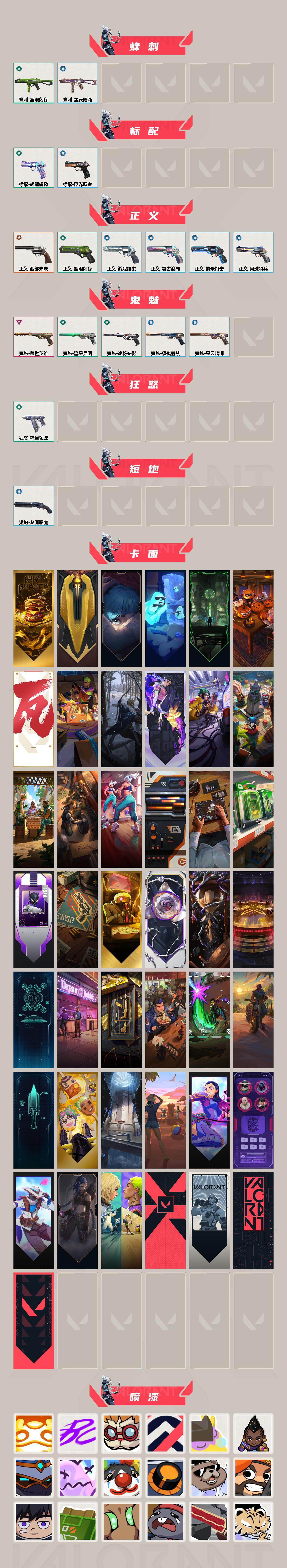 【卡面】:终章:激斗汉堡 卡面,进入射程 卡面,《双城之战》拥抱 卡面,精灵大战 卡面,欢迎来到底城 卡面,南瓜盛典 卡面,VCT CN首冠 卡面,唱片的故事 卡面,钢弓与箭弦 卡面,无畏契约:暮蝶 卡面,排除故障 卡面,战术桌游 卡面,悠享食光 卡面,修车达人 卡面,热舞环节 卡面,模拟赫兹 卡面,浮光跃金 卡面,超限闪存 卡面,维斯工牌 卡面,正义的化身 卡面,终章:生意人麦宝 卡面,铁之华 卡面,时间到 卡面,最高舞台 卡面,声感陷阱设计图 卡面,梦幻奶茶 卡面,终章:打造专属狂徒 卡面,趁热吃 卡面,源能反应 卡面,暂别喧嚣 卡面,零点嗅探设计图 卡面,终章:瓦娃脸雪糕 卡面,表象之下 卡面,沙雕爆能器 卡面,无畏契约GO!第一卷:芮娜 卡面,清除名单 卡面,无畏契约GO!第一卷:零 卡面,《双城之战》金克丝 卡面,钢锁vs盖可 卡面,代号红色 卡面,新兵报到 卡面,V契约 卡面,无畏契约