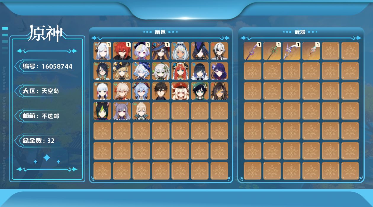 [16058744]60级/32黄/男主/24个五星角色/4个五星武器