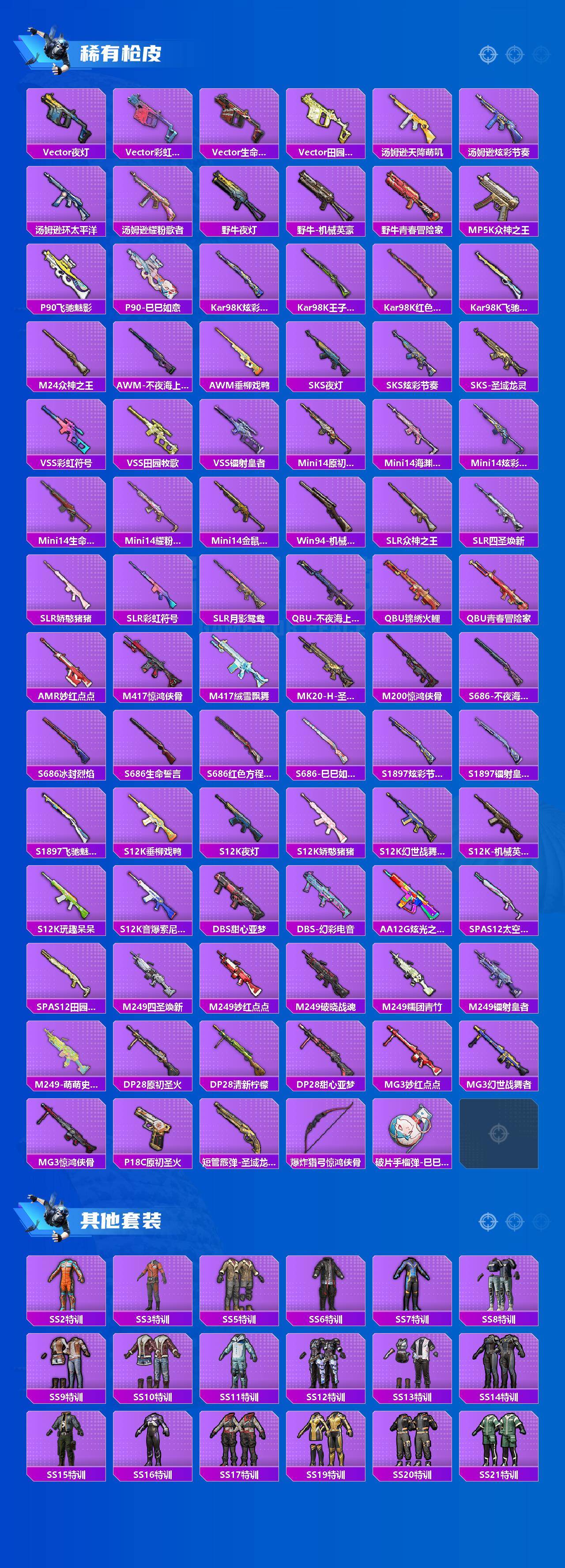 - [15649333]满级m4至情至胜【特价出售/店主推荐】苹果 手Q-22粉装-14特效枪-1载具-5粉色飞行器-110631热力值-20王牌印记-240套装-336枪皮 【热门品类】:粉装-怪诞乔克,粉装-梦幻火箭,粉装-童趣迷兔,粉装-音爆索尼克,套装-浪漫天命,套装-都市猎人,套装-深海小丑鱼,套装-小丑鱼,套装-忍者信条,套装-暗夜行者,套装-龟仙人,套装-暗影哥特,套装-红红火火,角色-8号机,角色-Mark.06,套装-红熊茄茄 【粉色套装】:粉装-幻影战神,粉装-未来战士,粉装-怪诞乔克,粉装-梦幻火箭,粉装-智能音符,粉装-放客神游,粉装-新星烈龙,粉装-花间之火,粉装-冰霜白皇,粉装-童趣迷兔,粉装-炙焰红王,粉装-星之彼岸,角色-零号机款机体服,粉装-冰川粉黛,粉装-冰川红玫,粉装-音爆索尼克,角色-猩猩队长,角色-圣堂之誓,角色-初号机 觉醒Ver.,粉装-桃粉嫣然,粉装-星穹咏叹调,粉装-幻彩电音 【粉色枪皮等级】:AKM-星际浪客(五级),SCAR-L-青春物语(四级),M416-五爪金龙(五级),M416-至情至圣(九级),GROZA-旋转彩虹(五级),AUG-星之彼岸(四级),AUG-暖羊咩咩(五级),UMP45-相思残雪(五级),UMP45-启明星(六级),汤姆逊-热量炸弹(五级),Kar98K-巳巳如意(五级),DP-28-豹影疾电(五级),平底锅-桃粉嫣然(三级),燃烧瓶-薄荷可可(四级) 【粉色载具】:兰博基尼Estoque(银翼灰),僚机-萌兔起飞 【粉色枪皮】:AKM-星际浪客,SCAR-L-青春物语,M416-五爪金龙,M416-至情至圣,GROZA-旋转彩虹,AUG-星之彼岸,AUG-暖羊咩咩,UMP45-相思残雪,UMP45-启明星,汤姆逊-热量炸弹,Kar98K-巳巳如意,DP-28-豹影疾电,平底锅-桃粉嫣然,燃烧瓶-薄荷可可 【粉色飞行器】:星之彼岸飞行器,星夜魔法师飞行翼,歌者泠鸢飞行器,灵珠游龙飞行器 【粉色降落伞】:绝对恒星降落伞,未来战士降落伞,甜心宝贝降落伞,梦幻火箭降落伞,王牌四分卫降落伞,星之彼岸降落伞,洛神天依降落伞,碧影闪光降落伞,青春物语降落伞,筑梦精灵降落伞,冰川粉黛降落伞,青空秋雨降落伞,启明星降落伞,音爆索尼克降落伞,第五大道降落伞,仲夏莫吉托降落伞,未来歌姬降落伞,精灵梦叶罗丽降落伞,初号机 觉醒Ver