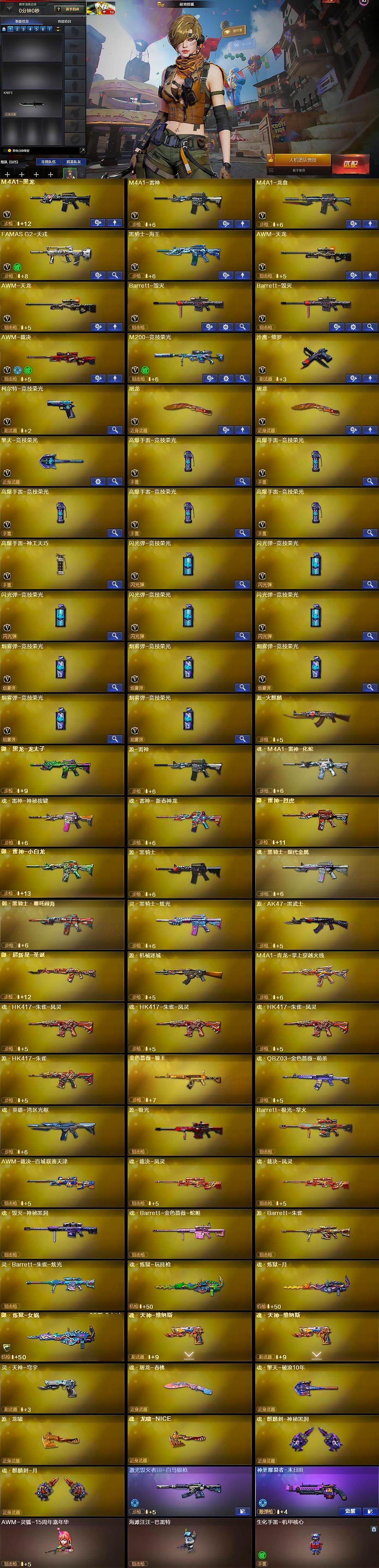 - [16461028]四川二区-54V-9王者武器数-0炫金武器数 【传说武器】:传说夜影 【传说角色】:传说艾莉莎 【热门武器】:传说夜影,Kar98K-星神,羊驼玩偶,COP 357-幻灵,沙鹰-修罗*3,炽芒蝶刃,金刚伞 【音效卡】:天神-动感闪耀 音效卡,M4A1-雷神音效卡,Barrett-毁灭音效卡,火线妹语音包 【皮肤】:裁决-过载 皮肤,星神-璀璨皮肤,雷神-虎将*2,雷神-脉冲核心,雷神-维纳斯皮肤,雷神-航星皮肤,火麒麟-华夏之心,火麒麟-轻羽皮肤,火麒麟-心动糖果,毁灭耀金皮肤,毁灭-冠军之怒,毁灭-直播专属,毁灭-英雄计划 皮肤,黑武士-典韦皮肤,龙啸-青青莓果 皮肤 【角色】:隼,王者凌霄,乔伊教练,暗夜-X,电竞少女,飞虎队-X,风暴女,嘉年华灵狐,娟娟,零-水下丽影,灵狐者-X,麻雀,曼陀罗-X,女主播,潘多拉-X,潘多拉-甜心教官,斯沃特-X,铁骑荣耀,兔囡囡,维纳斯,雪莉杨-摸金校尉,影武者-X 【人偶武器】:AWM-灵狐-15周年嘉年华,M37-葵,迷你深渊冰龙,迷你波特博士,迷你巨石泰坦-魔花研究所,沙鹰-夜玫瑰 【暴走生化】:超级对讲机 【挑战大师】:激光毁灭者III-白马银枪,神圣爆裂者-末日III 【英雄级武器】:AK47-火麒麟,M4A1-雷神,AK47-黑武士,QBZ03-天罚,无影-神兵利器,黑武士-锦绣游龙,FAMAS G2-天戎,烈火-动感闪耀,王者冰魄-觉醒版,王者火魄-觉醒版,QBZ-03-王者蔷薇-觉醒版,白虎之魄-觉醒版,王者芳薇-觉醒版,加利尔ACE-天袭,Barrett-毁灭,AWM-裁决,Kar98K-星神,王者之怒-觉醒版,王者风神-觉醒版,沙鹰-修罗*3,COP 357-幻灵,USP-神工天巧,王者之魂-觉醒版,天神-动感闪耀,屠龙*2,龙啸,擎天,麒麟刺,幻灵之锋,炽芒蝶刃,屠龙-动感闪耀,王者之锋-觉醒版,高爆手雷-幻灵*3,高爆手雷-神工天巧,手雷-动感闪耀,闪光弹-幻灵*2,闪光弹-神工天巧*2,烟雾弹-幻灵*2,烟雾弹-神工天巧*2,M4A1-赤狱骑士 【道具】:神秘礼盒背包,全能枪王背包,炫彩背包,虎牙炫彩背包,超级背包,哔哩哔哩名片,女皇终结者-魔龙之吻,救世主-黑桃战神,绿色巨人,灵魂忍者,迷雾幽灵,生化弹匣,夺命之镰,防化服*2,金色流光-枪王排位*2,星辰流光-枪王排位,流光-再燃火线,枪王排位