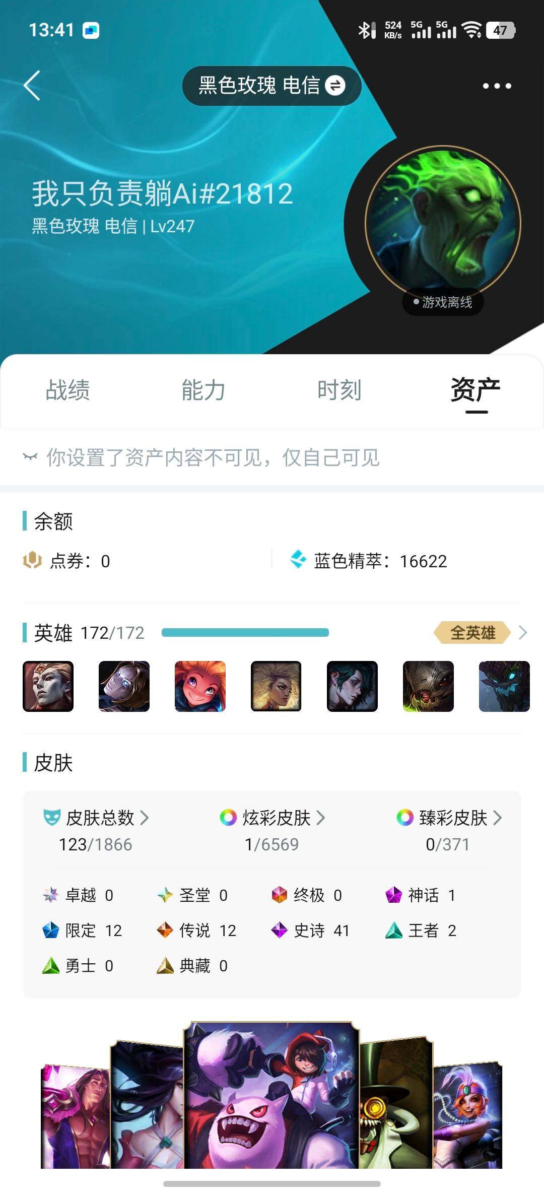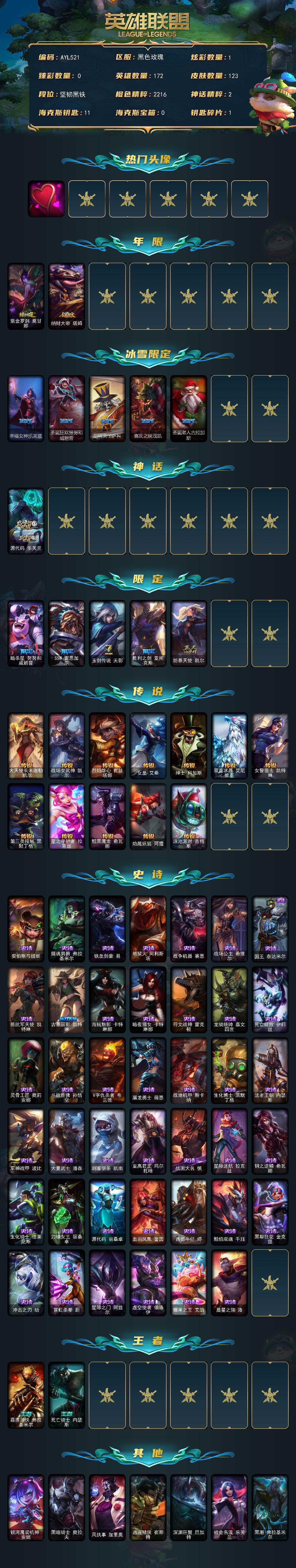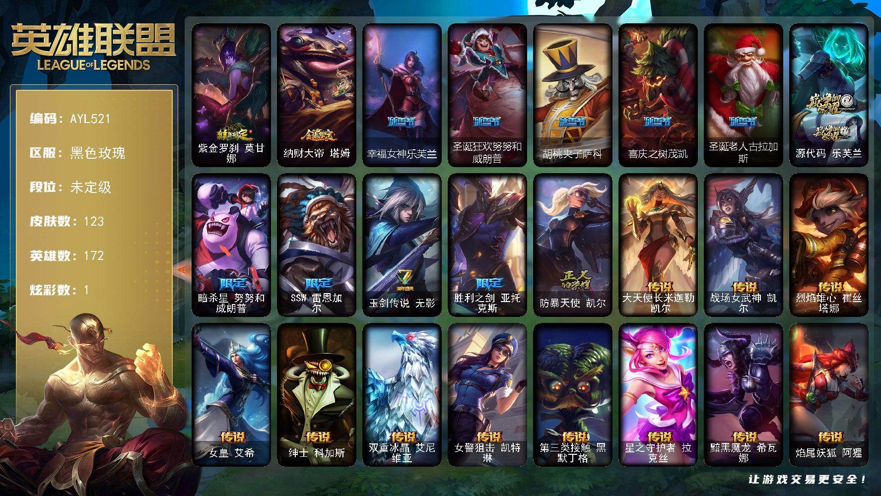 [16067113]【特价出售/店主推荐】未定级段位-172英雄-123皮肤-1炫彩-0终极-1神话-12限定-12传说-41史诗