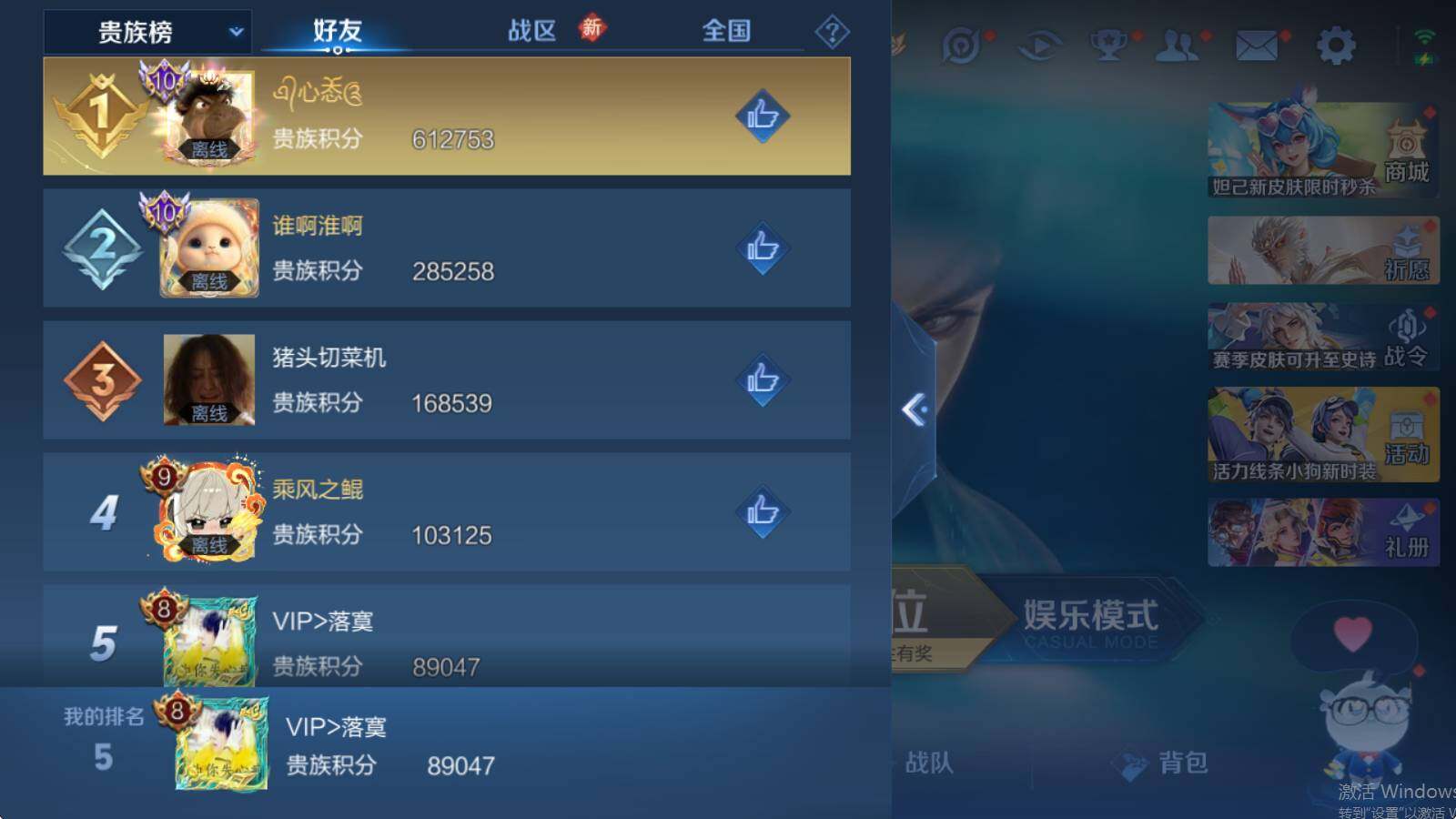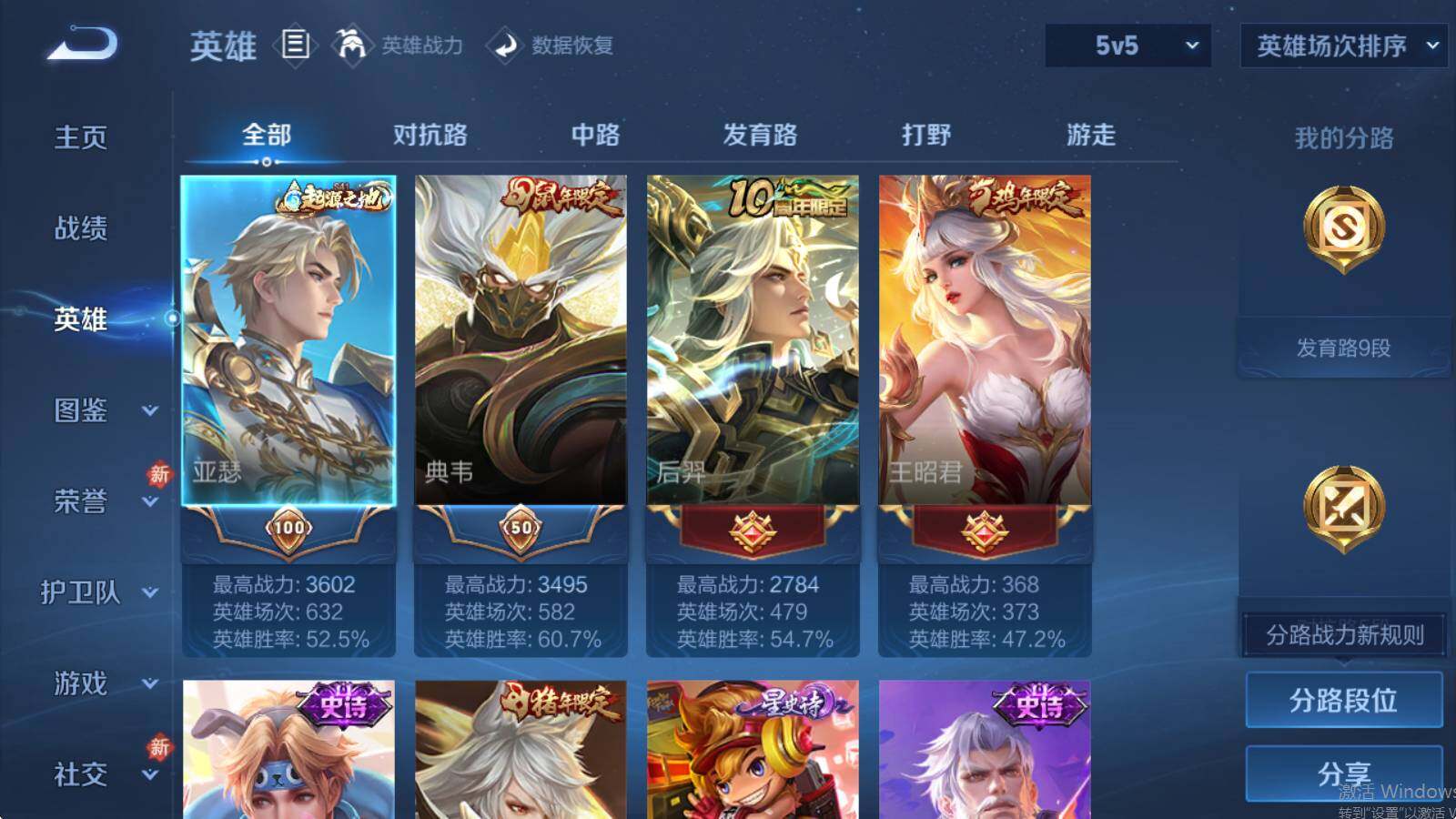 - [12264637]V7 9传说 122英雄 150皮肤 可修改实名 优质装备:炽阳神光,一念神魔,时之恋人-刘备(电焊工),无双飞将,山海·炽霜斩(李信年限) 传说皮:铠冥王哈迪斯 珍宝阁皮:胡桃夹子,万物之道 限定皮:愿照·岁时盈(虞姬年限),鸣野蒿,遇见飞天,怒海麟威,五谷丰年,神器·万象笔,山海·玄木吟(马可年限) 史诗皮:化蝶舞,星界战将,百相守梦-黄忠,谪仙醉月,蒙犽顽岩魄,特工魅影,冰冠公主,真我赫兹(百里守约),江河有灵,蒙恬荣光圣徽,末日机甲-吕布,猫狗日记-孙策,猫狗日记-大乔,节奏热浪,摇滚巨星,水果甜心,功夫厨神,德古拉伯爵,暗隐猎兽者,幽灵船长,鬼剑武藏,暗渊魔法,心灵战警,纤云弄巧,缤纷独角兽,水晶猎龙者,箭羽风息,金属风暴,鹰眼统帅,魅力维加斯,黎明之约,赏金猎手,无心