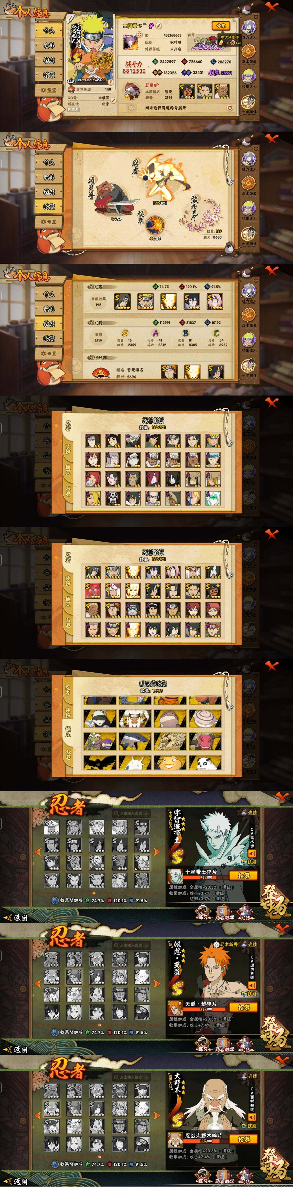 [16087061]16S级忍者数-41A级忍者数 【S级忍者】:宇智波鼬「秽土转生」(3星),春野樱「忍界大战」(3星),宇智波带土「忍界大战」(3星),艾「忍界大战」(3星),宇智波鼬「须佐能乎」(4星),宇智波斑「木叶创立」(3星),自来也「舞之豪杰」(3星),大蛇丸(3星),波风水门(3星),神秘面具男「红夜之刃」(3星),漩涡鸣人「九喇嘛连结」(3星),迈特凯「死门」(3星),佩恩「天道」(3星),宇智波佐助「永恒万花筒」(3星),波风水门「九喇嘛连结」(3星),漩涡鸣人·宇智波佐助(3星) 【A级忍者】:艾「青年」(2星),长门「青年」(2星),波风水门「青年」(2星),达鲁伊「博人传」(2星),迪达拉(2星),迪达拉「秽土转生」(2星),大蛇丸「晓」(2星),奇拉比(2星),奇拉比「忍界大战」(2星),飞段(3星),飞段「死司凭血」(2星),干柿鬼鲛(5星),漩涡博人「桃式显现」(2星),漩涡鸣人「仙人模式」(2星),漩涡鸣人「九尾查克拉」(2星),迈特凯(4星),旗木卡卡西「万花筒写轮眼」(2星),桃地再不斩「漂泊武士」(2星),我爱罗「疾风传」(4星),我爱罗「忍界大战」(2星),蝎(3星),猿飞阿斯玛(4星),宇智波止水(2星),宇智波止水「新春限定」(2星),宇智波鼬(2星),宇智波佐助「须佐能乎」(2星),宇智波佐助「万花筒写轮眼」(2星),日向宁次「忍界大战」(2星),宇智波带土「暴怒」(2星),长十郎「六代目水影」(2星),李洛克「忍界大战」(2星),黑土「博人传」(2星),千手扉间「漂泊武士」(2星),秋道丁次「忍界大战」(2星),千代「近松十人卫」(2星),不缘(2星),不风(2星),宇智波泉奈(2星),不动(2星),巳月「仙人模式」(2星),迈特凯「青春爆炸」(2星)