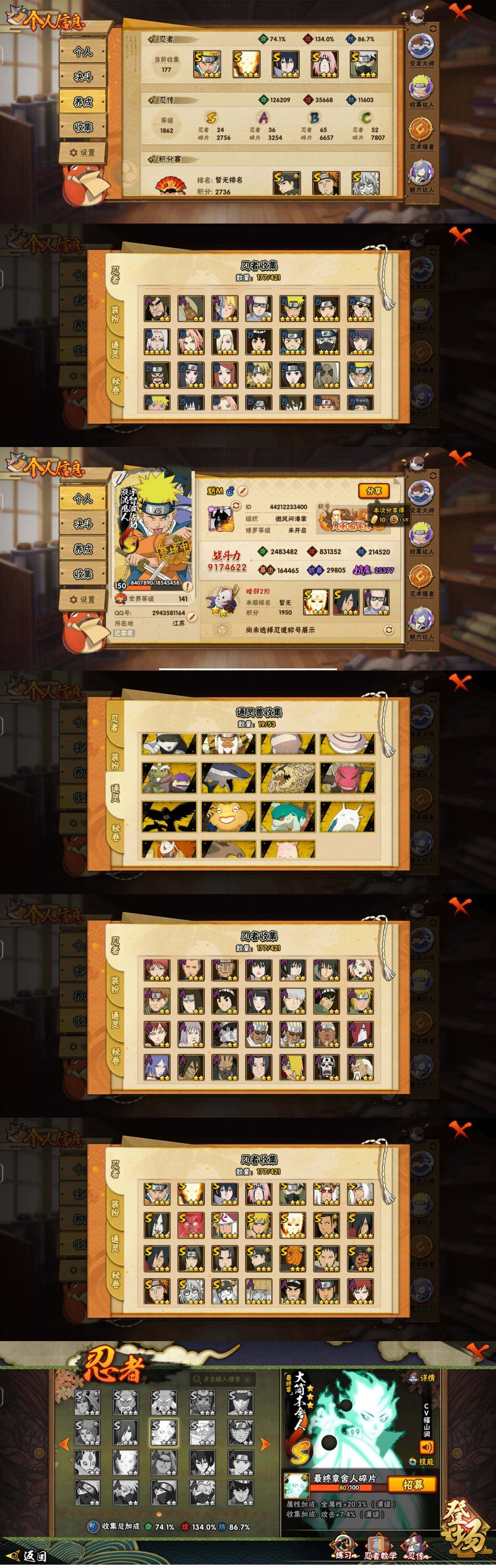 [16087180]24S级忍者数-36A级忍者数 【S级忍者】:波风水门「秽土转生」(3星),宇智波鼬「秽土转生」(3星),宇智波斑「秽土转生」(3星),宇智波斑「秽土转生·解」(3星),春野樱「忍界大战」(3星),宇智波带土「忍界大战」(3星),宇智波鼬「须佐能乎」(3星),宇智波止水「须佐能乎」(3星),旗木卡卡西「须佐能乎」(3星),千手柱间「木叶创立」(3星),自来也「舞之豪杰」(3星),大蛇丸(3星),自来也「传说中的三忍」(3星),波风水门(3星),药师兜「仙人模式」(3星),神秘面具男「红夜之刃」(3星),漩涡鸣人「九喇嘛连结」(3星),迈特凯「死门」(3星),佩恩「天道」(3星),宇智波佐助「永恒万花筒」(3星),大筒木桃式(3星),波风水门「九喇嘛连结」(3星),宇智波斑「五影会谈」(3星),漩涡鸣人·宇智波佐助(3星) 【A级忍者】:艾「青年」(2星),长门「青年」(2星),波风水门「青年」(2星),达鲁伊「博人传」(2星),迪达拉(2星),奇拉比(2星),奇拉比「忍界大战」(2星),飞段(3星),飞段「死司凭血」(2星),干柿鬼鲛(5星),漩涡博人「桃式显现」(2星),机械鸣人「初始形态」(2星),迈特凯(4星),旗木卡卡西「幻之真容」(2星),桃地再不斩「秽土转生」(2星),我爱罗「疾风传」(4星),我爱罗「忍界大战」(2星),蝎(4星),蝎「绯流琥」(2星),小南「漂泊浪客」(2星),角都「秽土转生」(2星),猿飞阿斯玛(4星),宇智波鼬「夏日限定」(2星),宇智波佐助「须佐能乎」(2星),宇智波佐助「万花筒写轮眼」(2星),日向宁次「忍界大战」(2星),日向雏田「最终章」(2星),长十郎「六代目水影」(2星),李洛克「忍界大战」(2星),春野樱「百豪」(2星),秋道丁次「忍界大战」(2星),千代「近松十人卫」(2星),神农「羁绊」(2星),宇智波泉奈(2星),大野木「侠隐江湖」(2星),迈特凯「青春爆炸」(2星)